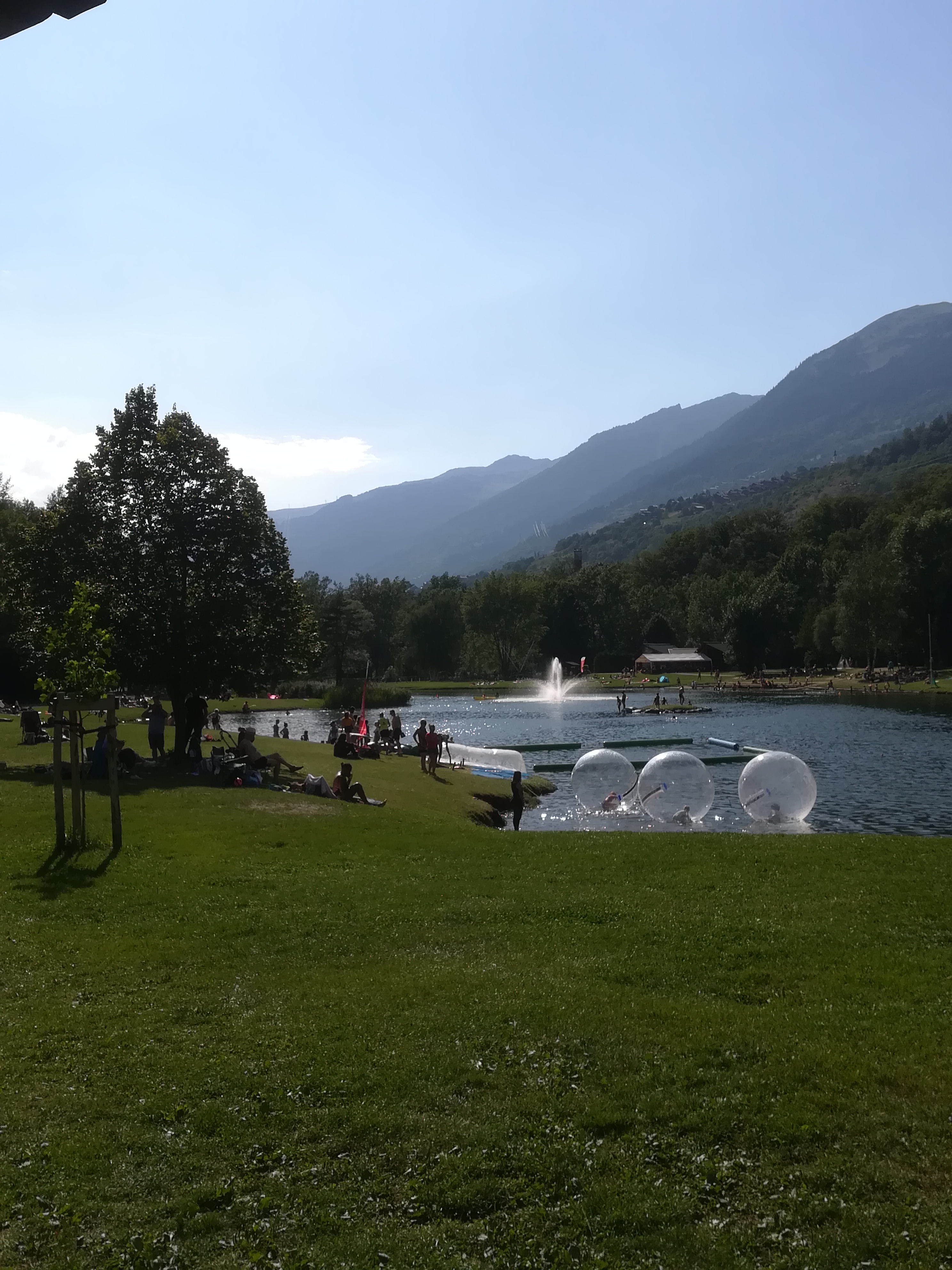 Posté le 04/07/2019 à 11:22"Base de loisirs avec le plan d'eau et sesplages en herbes, au soleil ou à l'ombre, plusieurs activités payantes, accrobranche, trampoline, structure gonflable, bulles sur l'eau, Pédalos, canoë y en a pour tout le monde, piste cyclable entre Aime et Bourg-Saint-Maurice bien pratique..."