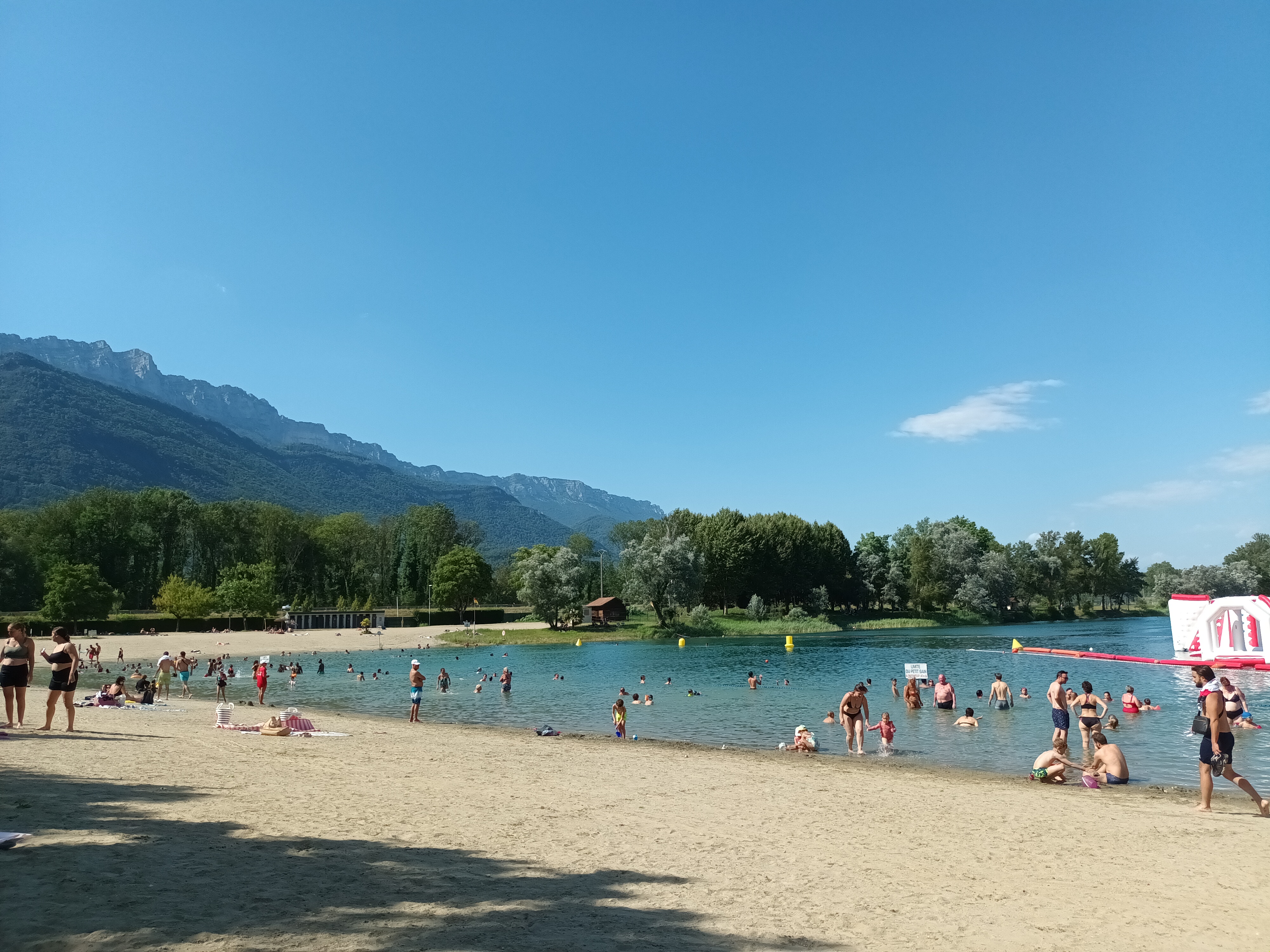 Cette base de loisirs est à une grosse vingtaine de minutes de Grenoble et permet à un faible coût d’avoir accès à un point d’eau, pratique en période caniculaire. Le +: les jeux en structure gonflables. Super pour les petits (>6ans) comme pour les grands pour seulement 5€ les 30 minutes. Les -: - le sable qui n’est pas du sable de plage, très volatil et salissant. - l’espace de baignade qui est tout en longueur