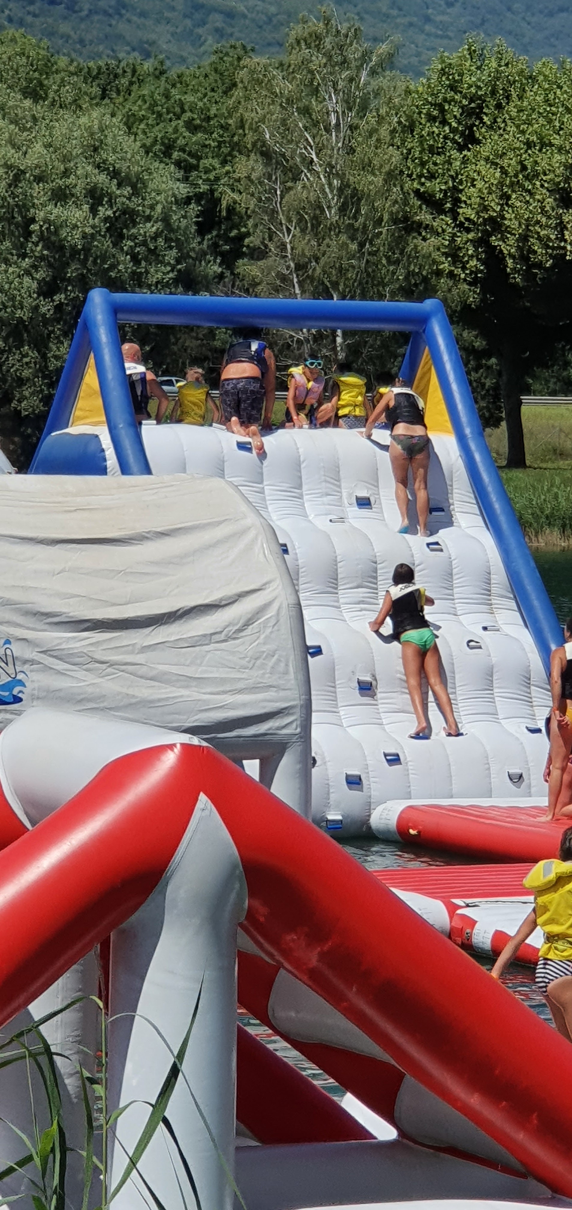 Lac très fréquenté,l'eau est propre et agréable pour nager. Les enfants ont adoré les structures gonflables sur l'eau