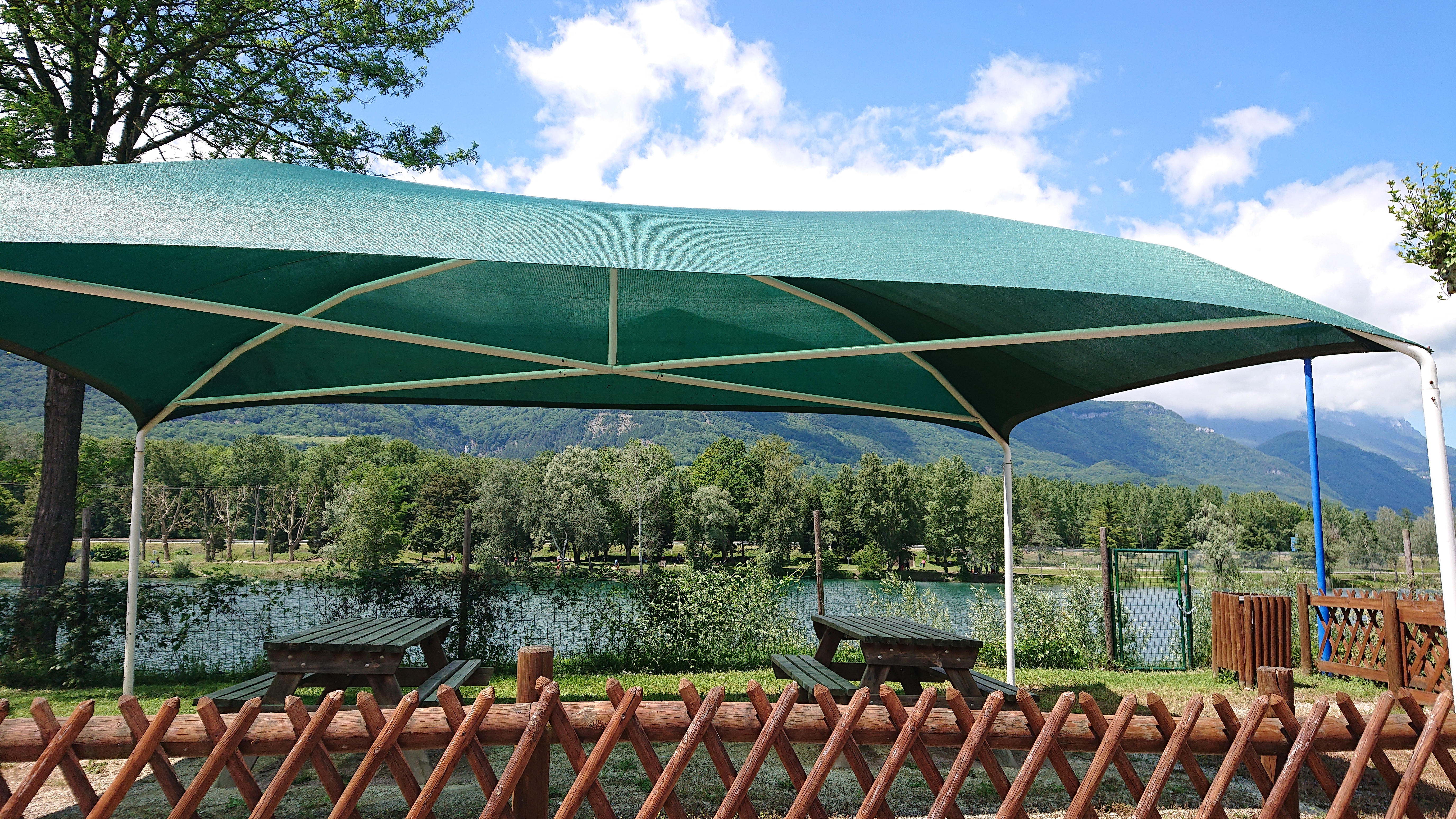 Un côté payant avec jeux gonflables. Une partie gratuite avec zone de pique nique ombragé. Des espaces pour barbecues. Lieu calme