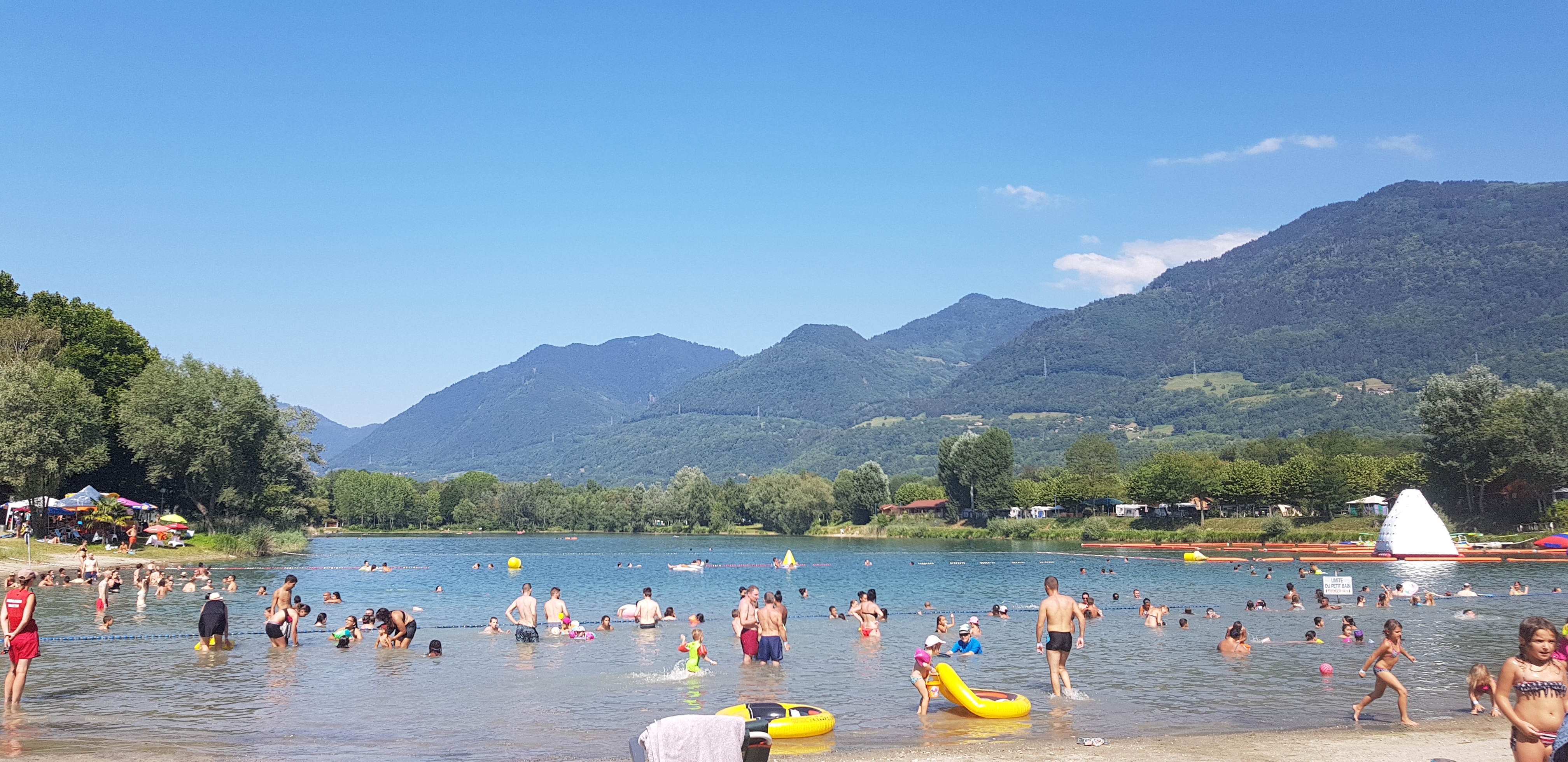 Pour l'entrée très bonnes accueil et vigiles drôles et respectueux pour nos affaires mais néanmoins les matelas gonflable,ballon tout ces partent aux oubliettes car ils sont interdits néanmoins malgré la surveillance des maîtres nageurs qui sont pour surveiller et nous font respectée les règles il ya n'empêche des accidents cela fait 2 fois que je part à la terrasse de ma vie et chaque fois nous sommes tous obliger d'évacuer pendant 1 heure le lac et d'attendre que la victime soit embarqué puis cela. Et enfin l'espace est un peu petit quand même je préfère quand même le bois français qui n'est pas loin de Grenoble