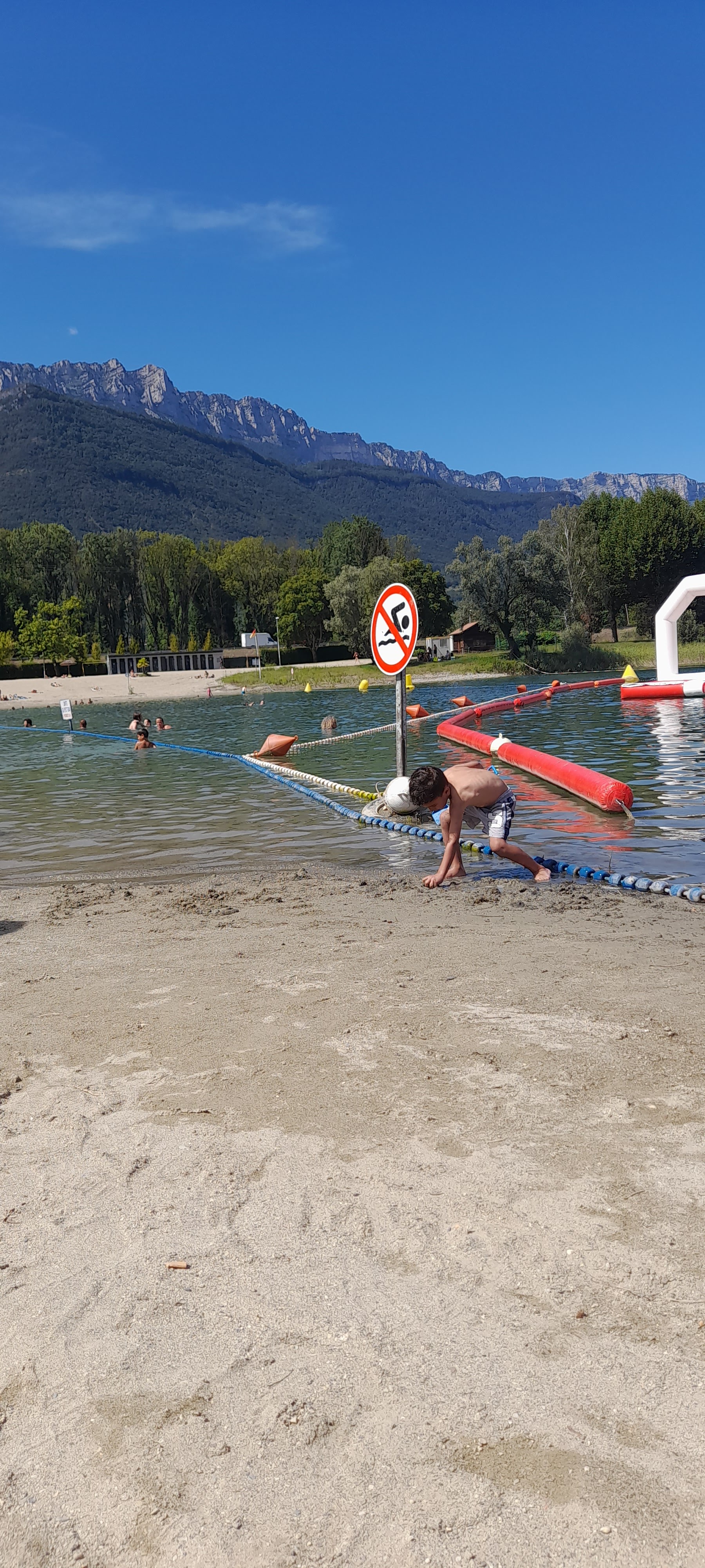 Première fois qu'on vient à ce lac et ça sera la dernière fois..... Beaucoup trop d'interdiction qui on ni queue ni tête... Bouée, ballon, matelas et autres interdits, bouteille verre couteaux interdits, ma fille a bientôt 4 ans et n'a pas le droit de dépasser la limitation de nage même avec ses nageot et avec nous.... Le seul point positif est la température de l'eau top Même les jeux gonflables payant bien évidemment à 5€ la 1/2 heure....