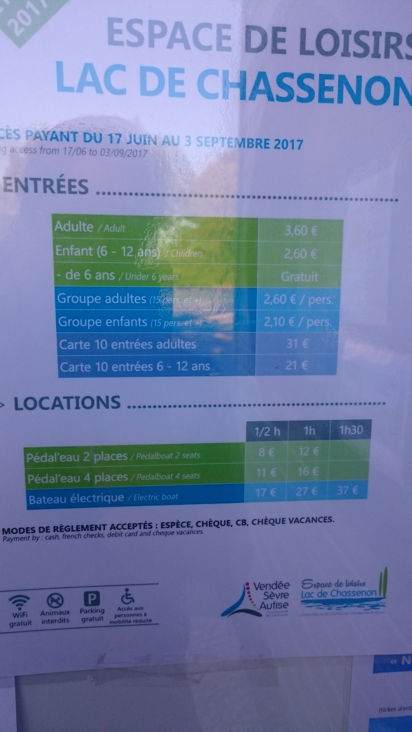 Posté le 15/08/2018 à 21:14"Base de loisirs payante, tarif adulte pratiqué à partir de 12 ans ! Pas de possibilité de faire le tour du lac, zone de baignade limitée, activités en supplément qualité prix pas justifiée pas rapport à d autres base de la région, le Lambon, Cherveux."