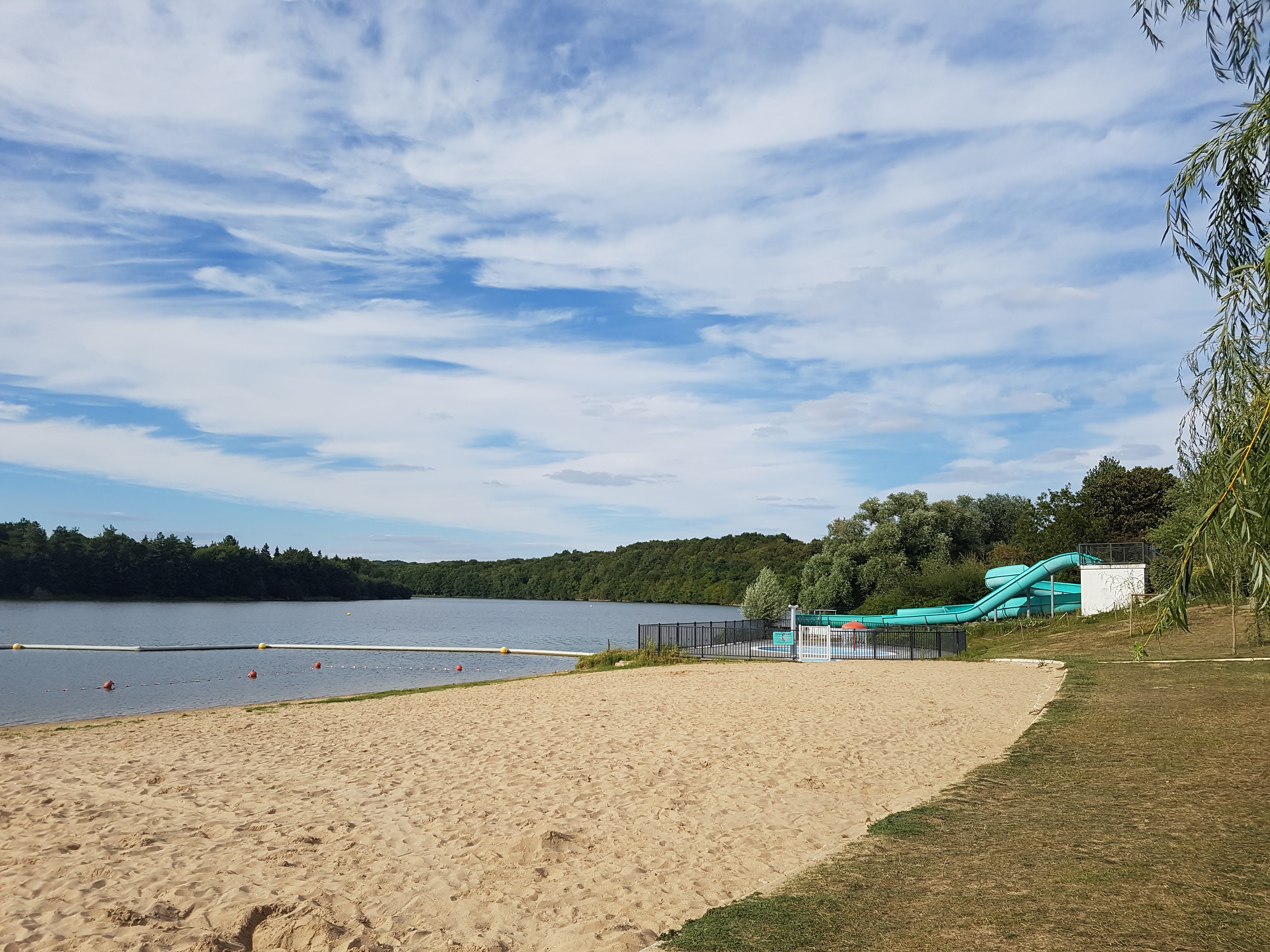 Posté le 11/08/2023 à 13:27"Super journée sur l'espace de loisirs avec un enfant de 2 ans. Tarif extrêmement abordable pour trouver sur place des jeux (toboggan, structure en cordes, balançoire, ...), une structure gonflable, le lac bien sûr, une pataugeoire pour les moins de 6ans (non chauffée) et un toboggan aquatique. Buvette disponible sur place. Le lac est magnifique et le lieu bien entretenu. Nous reviendrons !"