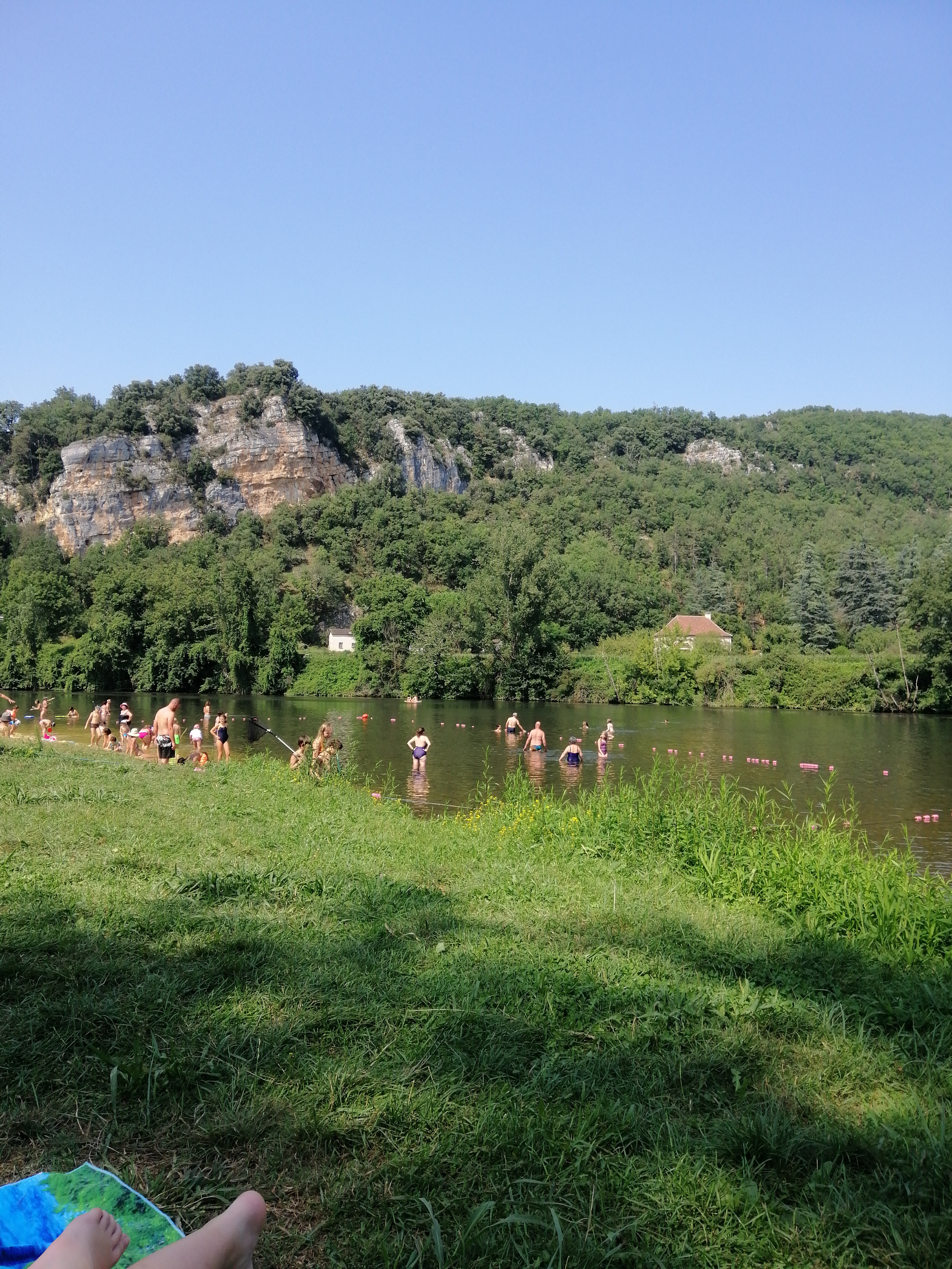 Plage sur le Lot, assez grande berge sablée. Très rafraîchissant après la visite de saint cirq lapopie