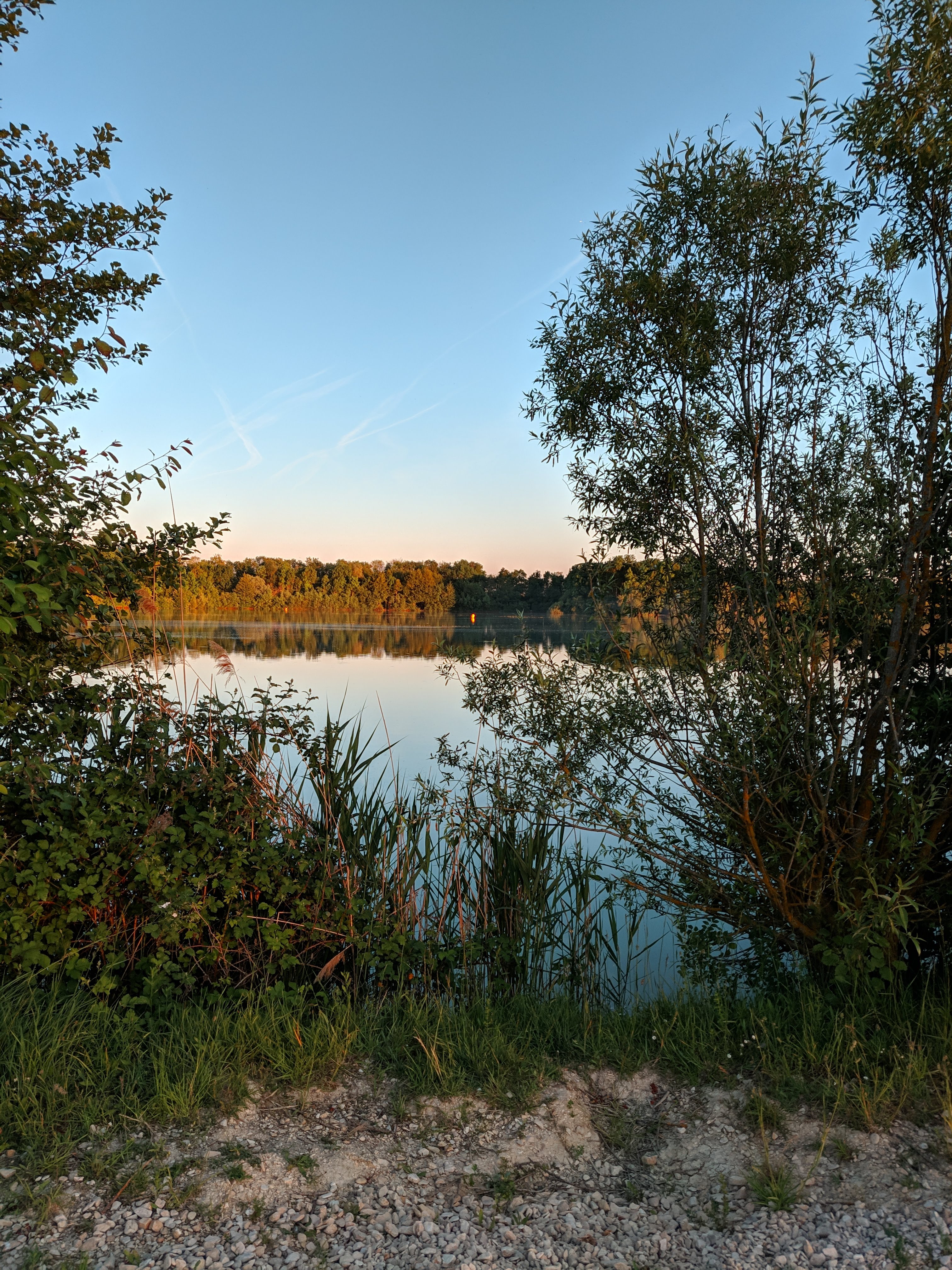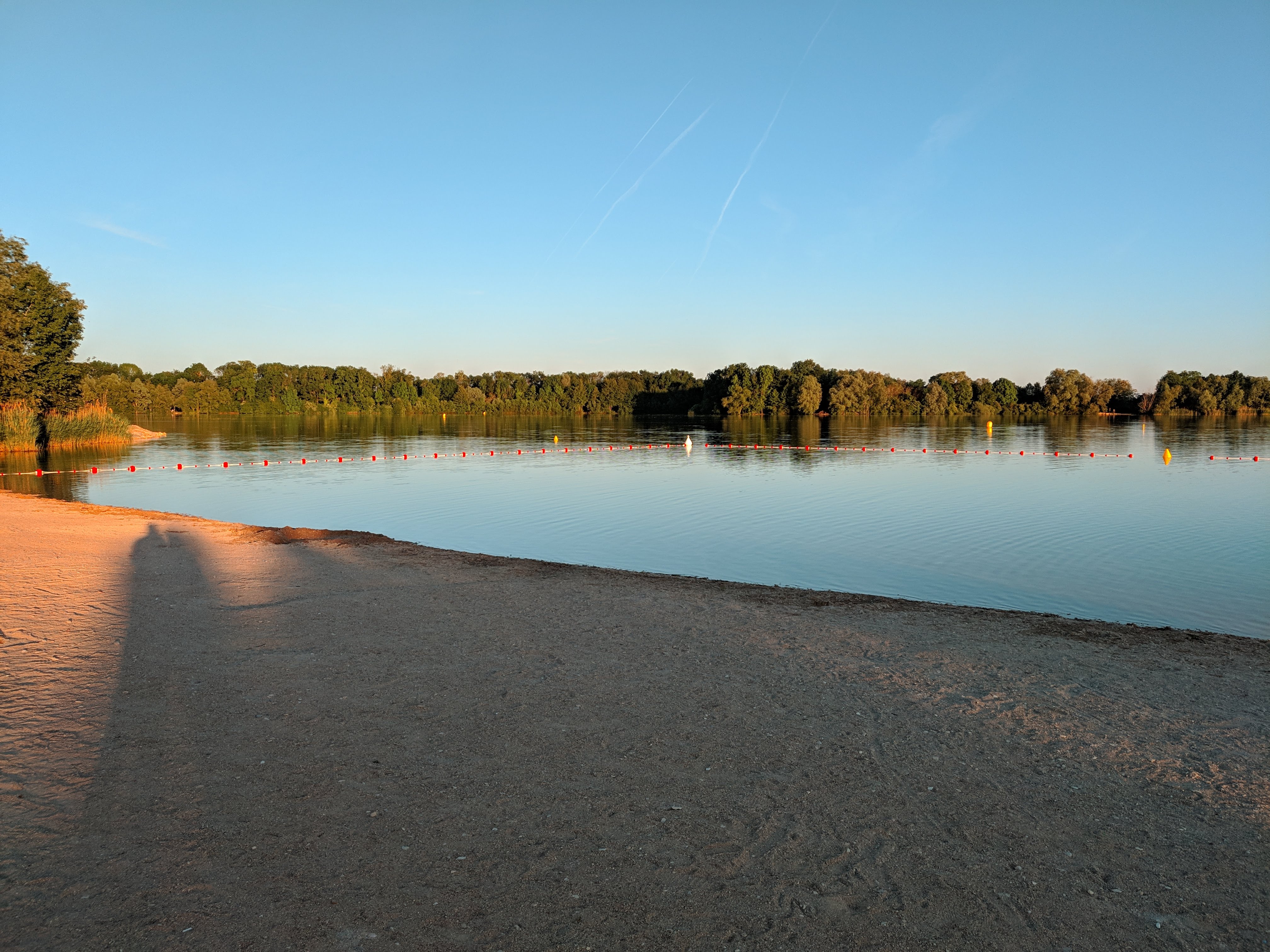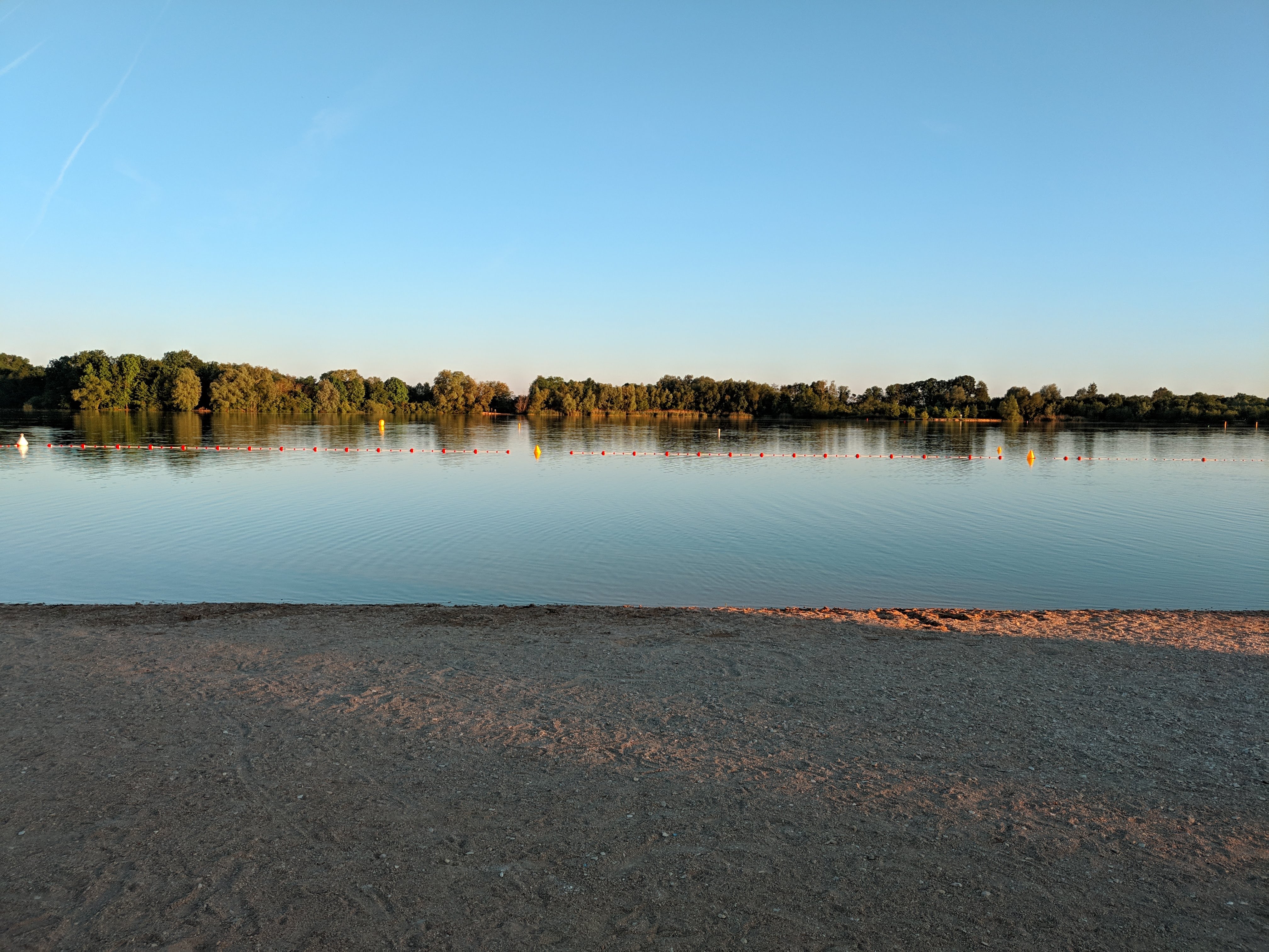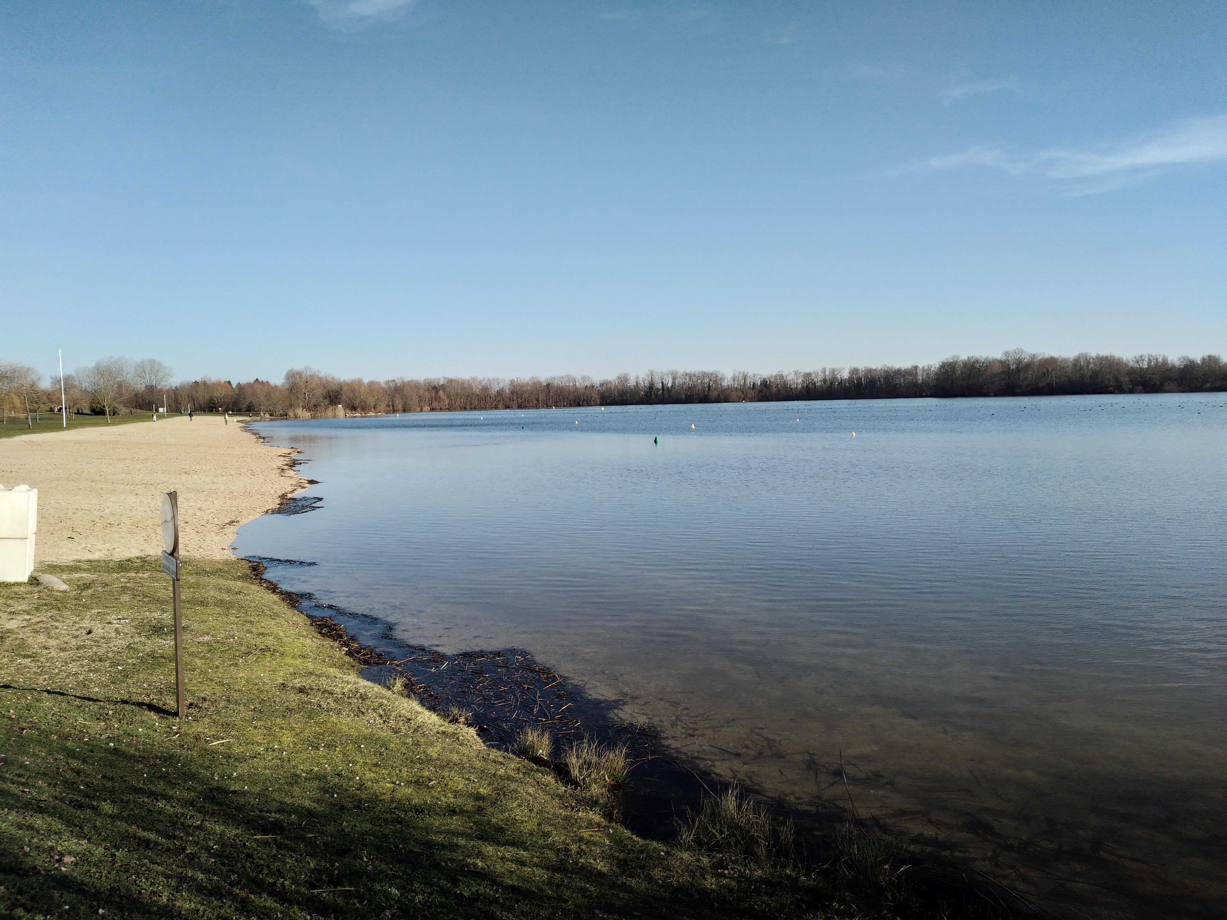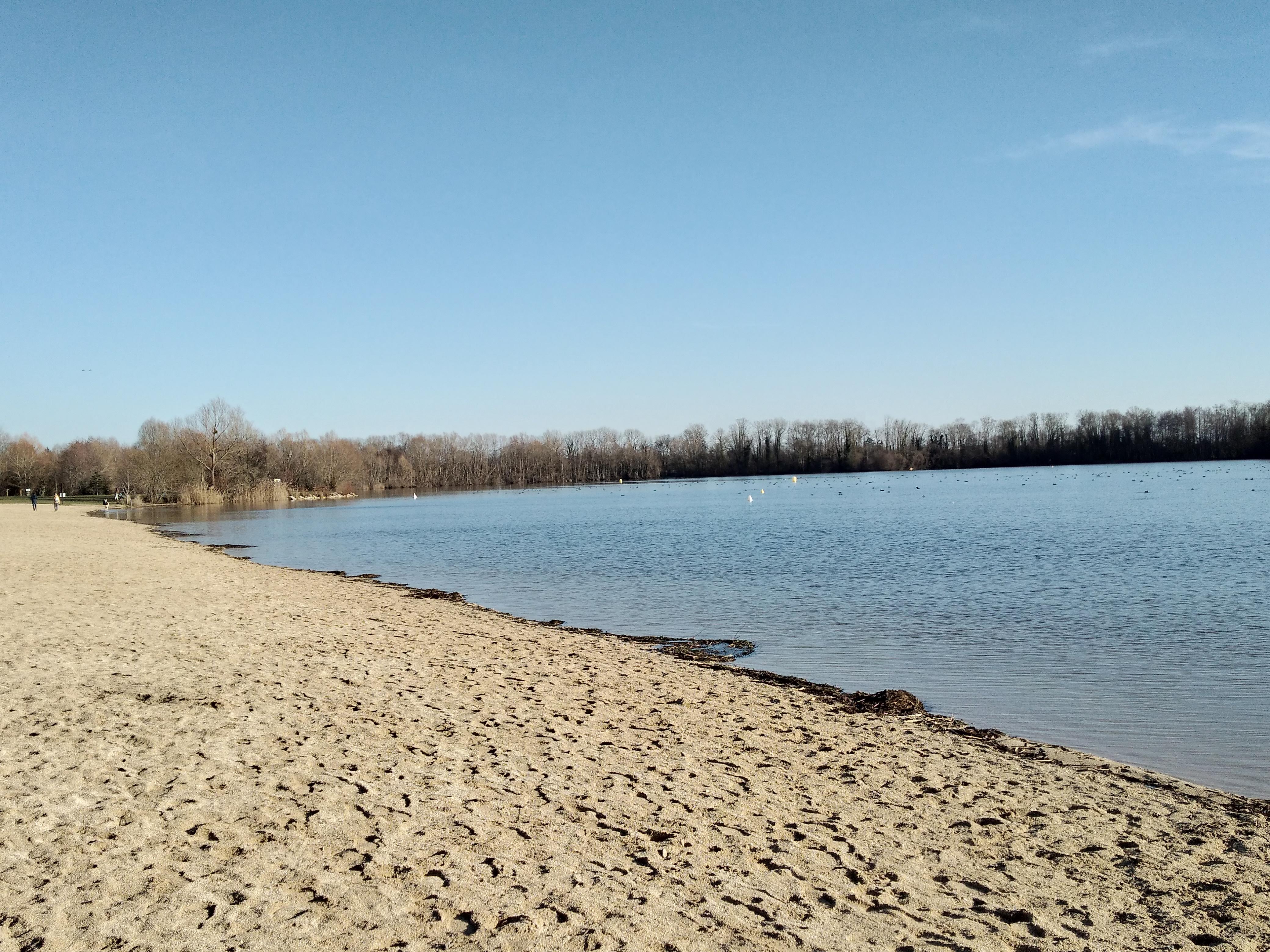 Petit tour de lac sympa mais attention pour ceux qui veulent se baigner l'été, prévoyez les parasols car beaucoup trop peu d'arbres c'est galère... sinon un filet de handball est à disposition et un endroit pour accrocher les vélos aussi. Attention aux propriétaires de chiens: tout est mis en œuvre pour interdire l'accès aux chiens au lac. Des fils ont été installés pour interdire la baignade