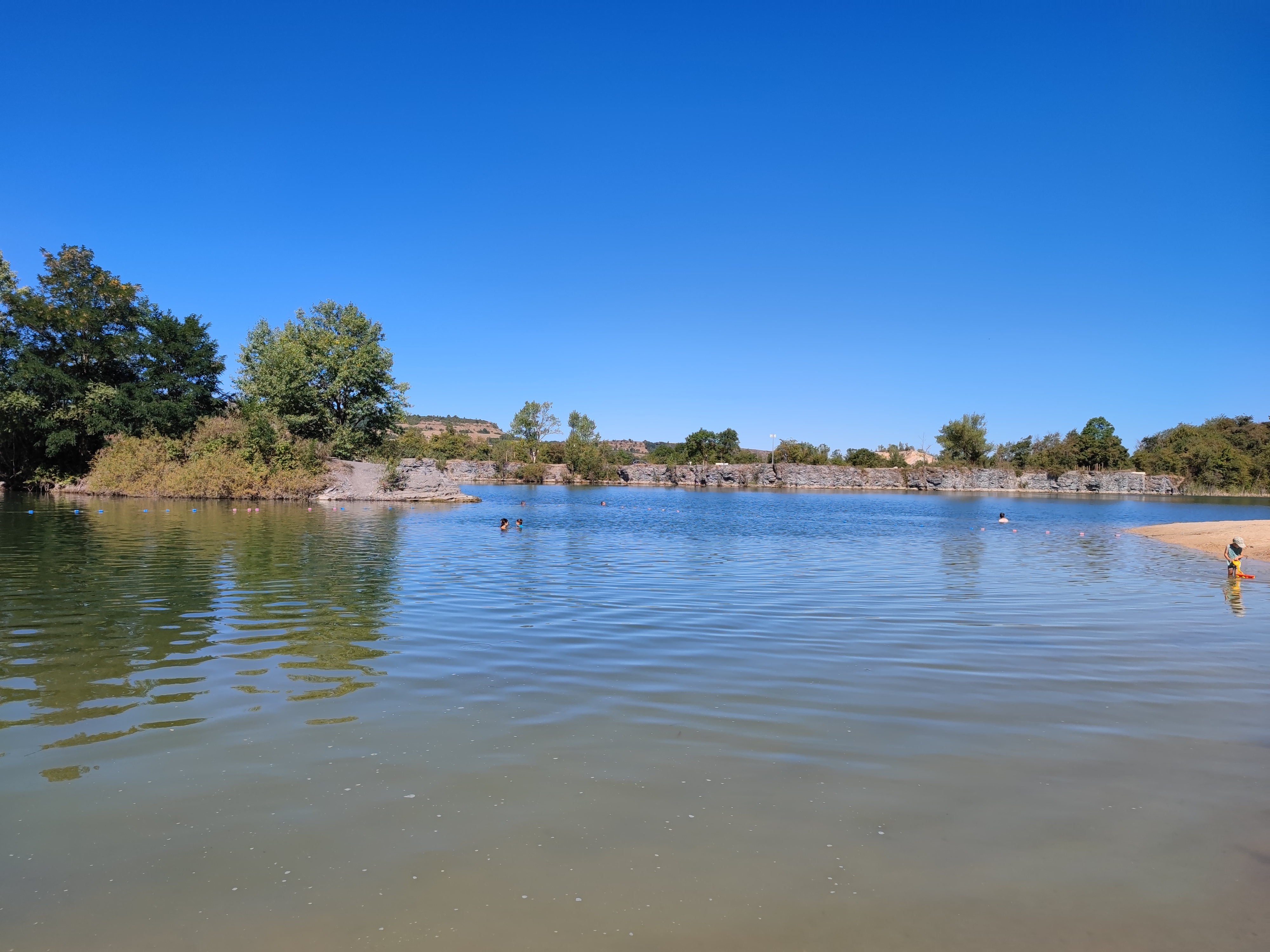Voici un lieu super sympathique très très calme une ancienne carrière ou l'on peux si baigner. Une plage aménagée de quoi faire le tour du plan d'eau à pieds où en vélo de quoi se restaurer avec à ce lac..et même y dormir en camping car et admiré le château de Severac le Château sur sa Coline éclairé le soir un endroit magique te calme.