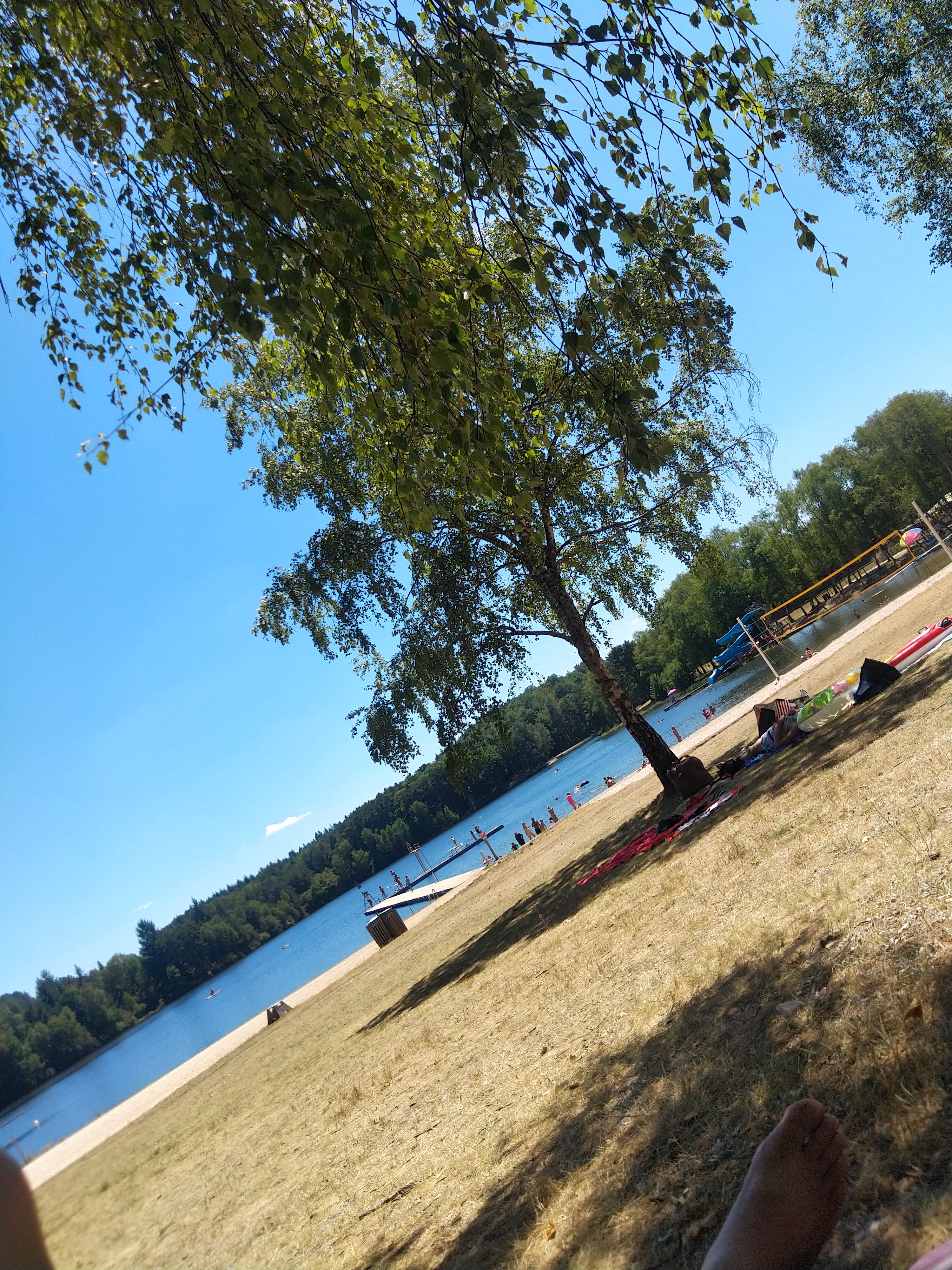 Super lieu allez y si vous chercher un lac allez à celui ci le parking est payant mais cela vaut quand même le coup. Il y a un toboggan et des plongeoir le lac n est pas froid et il y a une plage aménagée.