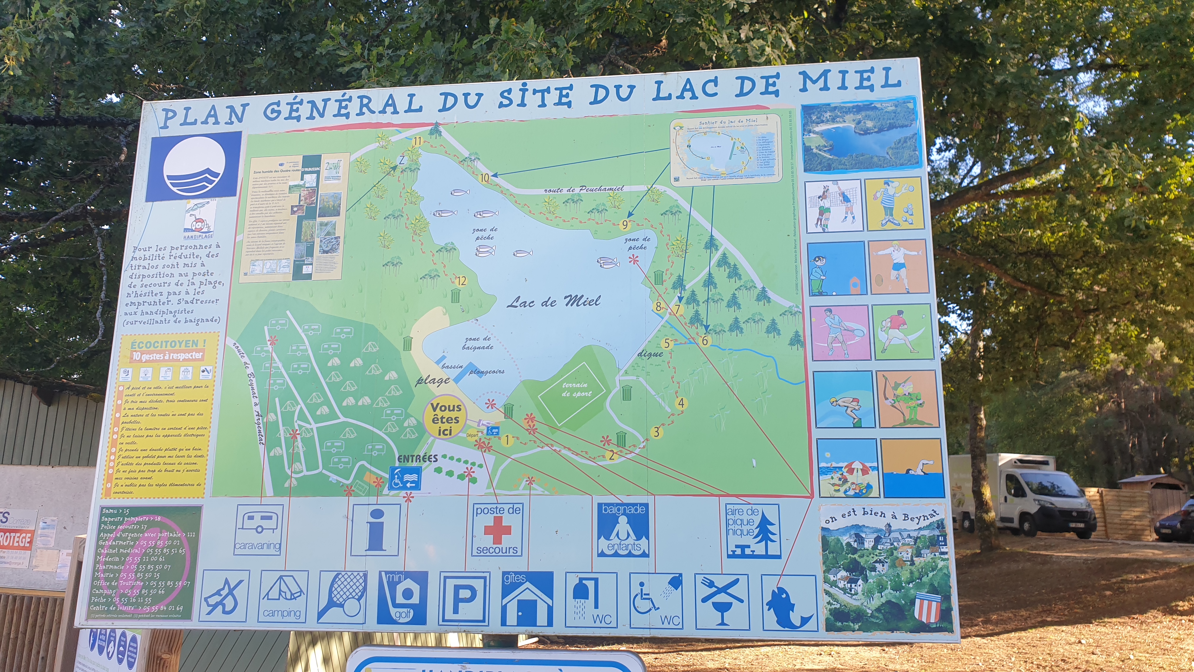 Le lac de miel se vit au fil des saisons car sa nature change avec le temps et offre des couleurs, des sons, des atmosphères variées. Hors saison, le lieu se veut propice au calme et à la volupté, propice aux promenades ressourçantes. Vous faites d'ailleurs le tour du lac en une petite vingtaine de minutes. En haute saison, il est dommage de constater les détritus laissés par des touristes peu scrupuleux, alors que la structure est équipée de nombreuses poubelles de tri sélectif. Vous y trouverez quelques bancs, nombreuses zones ombragées, une plage aménagée avec bassins de diverses profondeurs et jeux gonflables sur l'eau. Bar et petite restauration sur place possible. WC et cabines pour se changer à disposition. Forêt de pins et autres variétés d'arbres pour compléter et donner la part belle à une nature verdoyante et fournie.