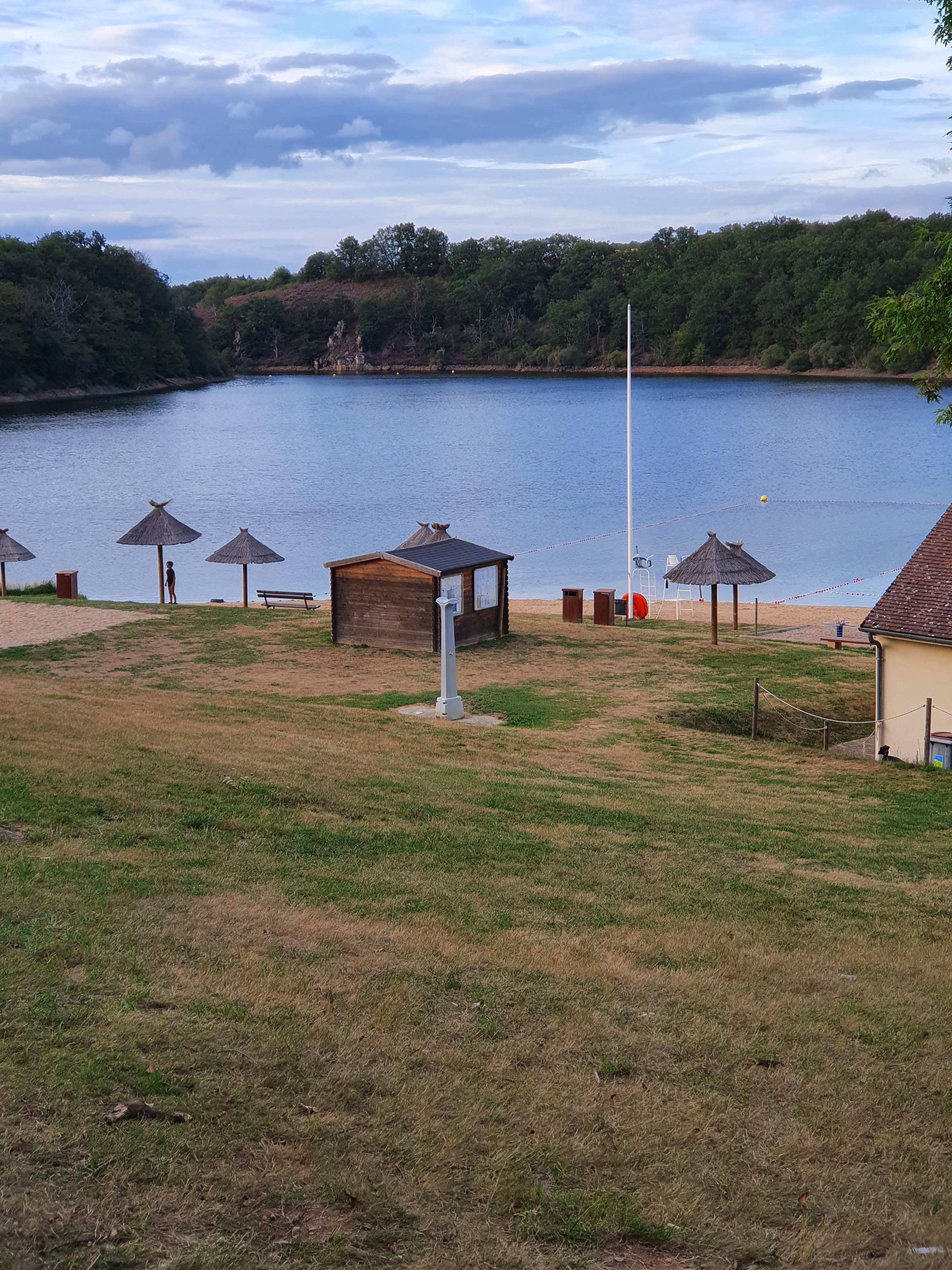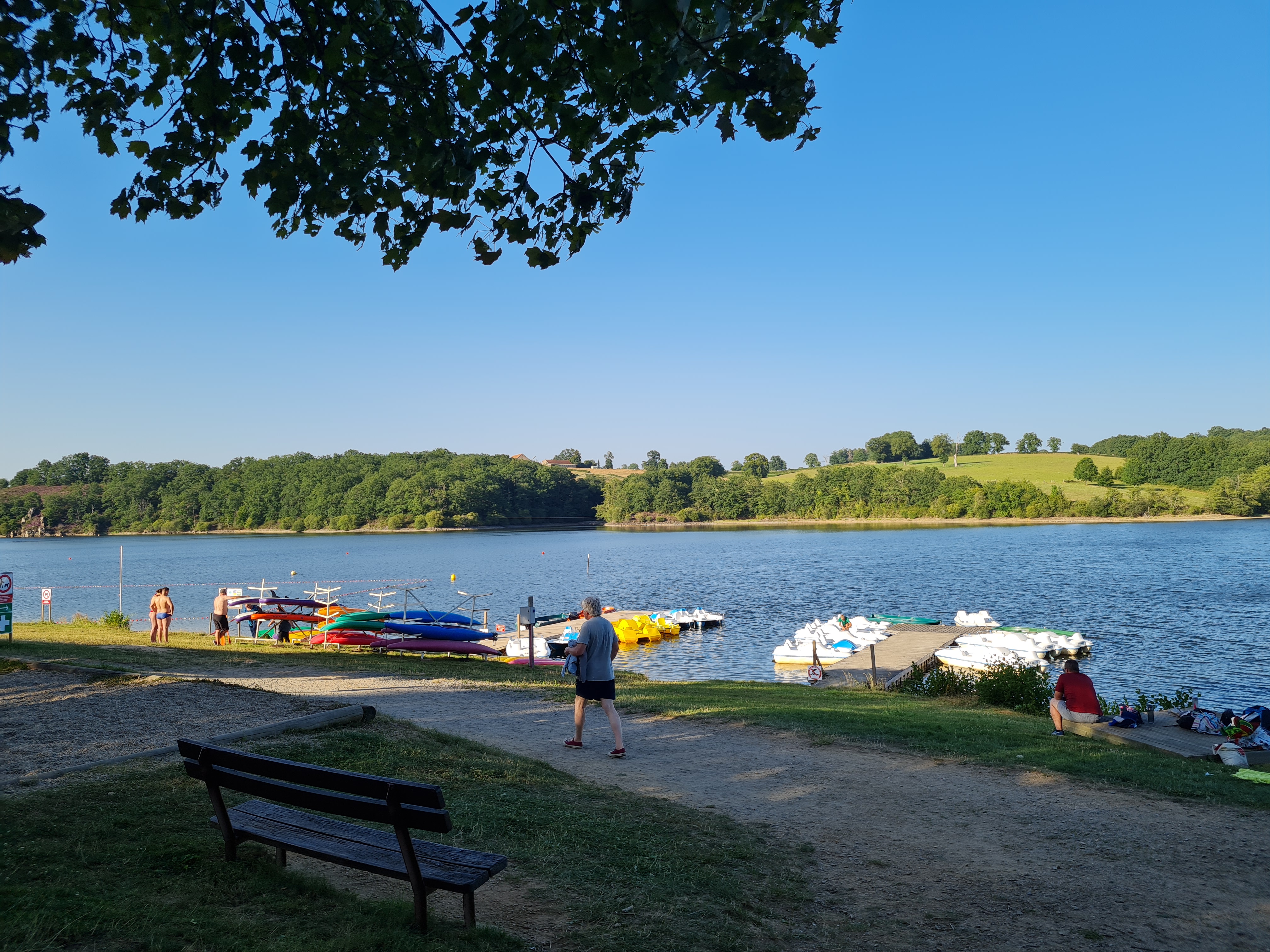 Beau lac et bien agencé côté plage, pédalo, tyrolienne et de quoi pique niquer et s approvisionner sur place. Suffisamment d arbres pour ombrage
