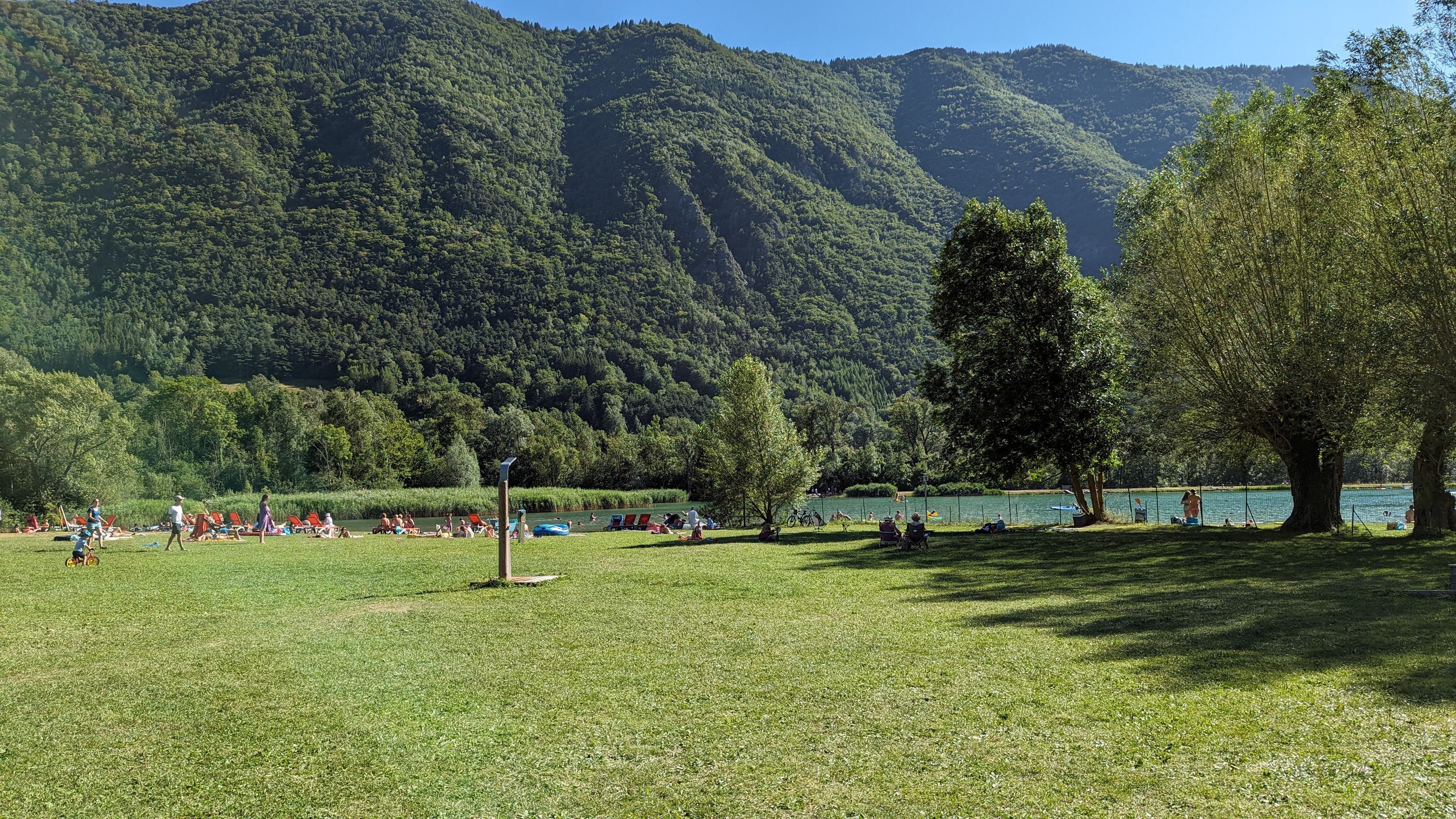 Lac très agréable et propre. Une belle découverte ! L’eau et la pelouse sont très propres. Le lac est plat assez longtemps ce qui permet aux petits de jouer dans l’eau facilement Un peu loin de Grenoble mais bien mieux fréquenté que les autres lacs surpeuplés. Nous reviendrons avec plaisir nous détendre