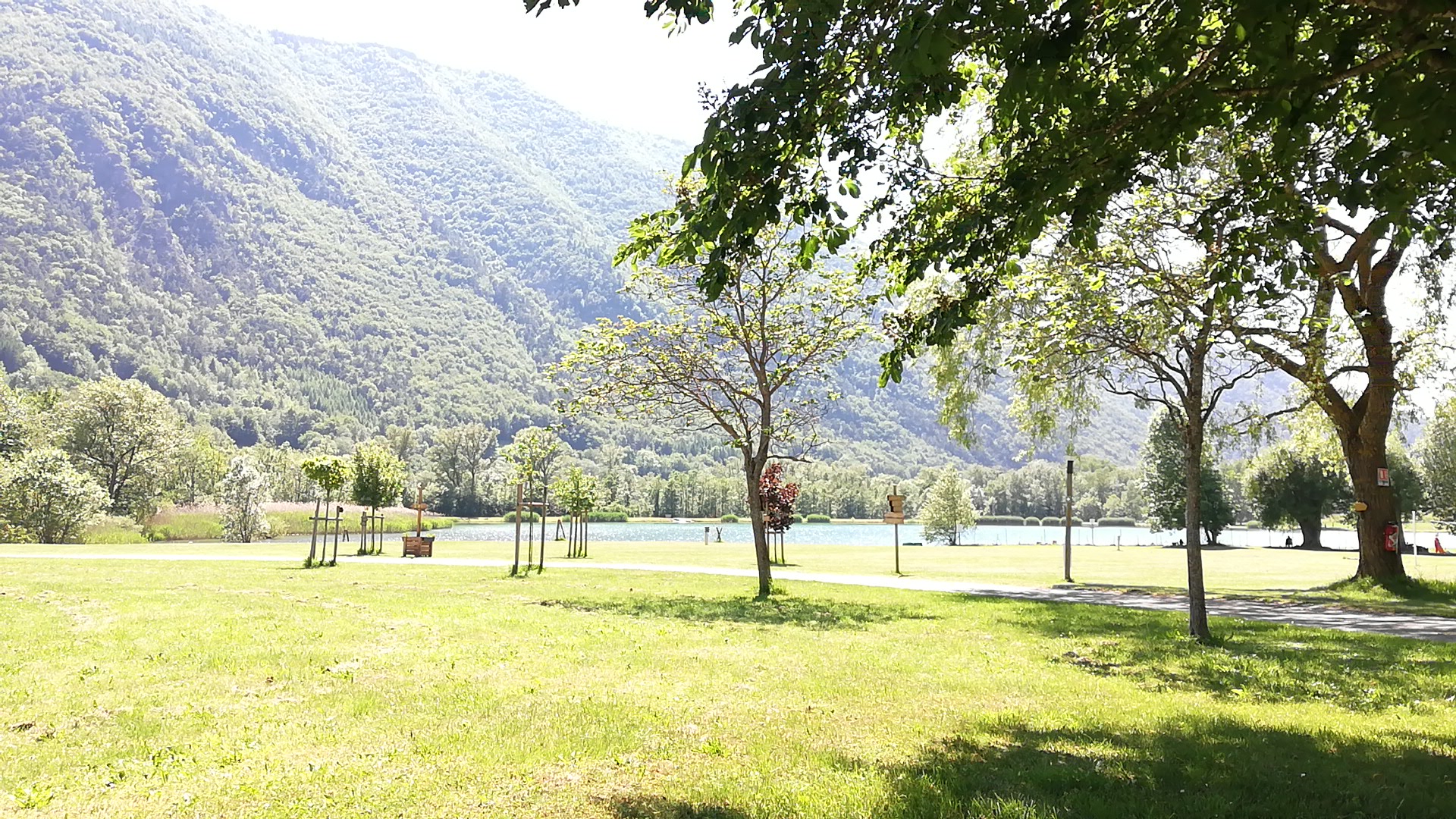 Petit lac sympa pour de bons moments en famille Il y a quelques zones d'ombres très agréables et il est possible de faire de petites balades autour du lac même avec la poussette !