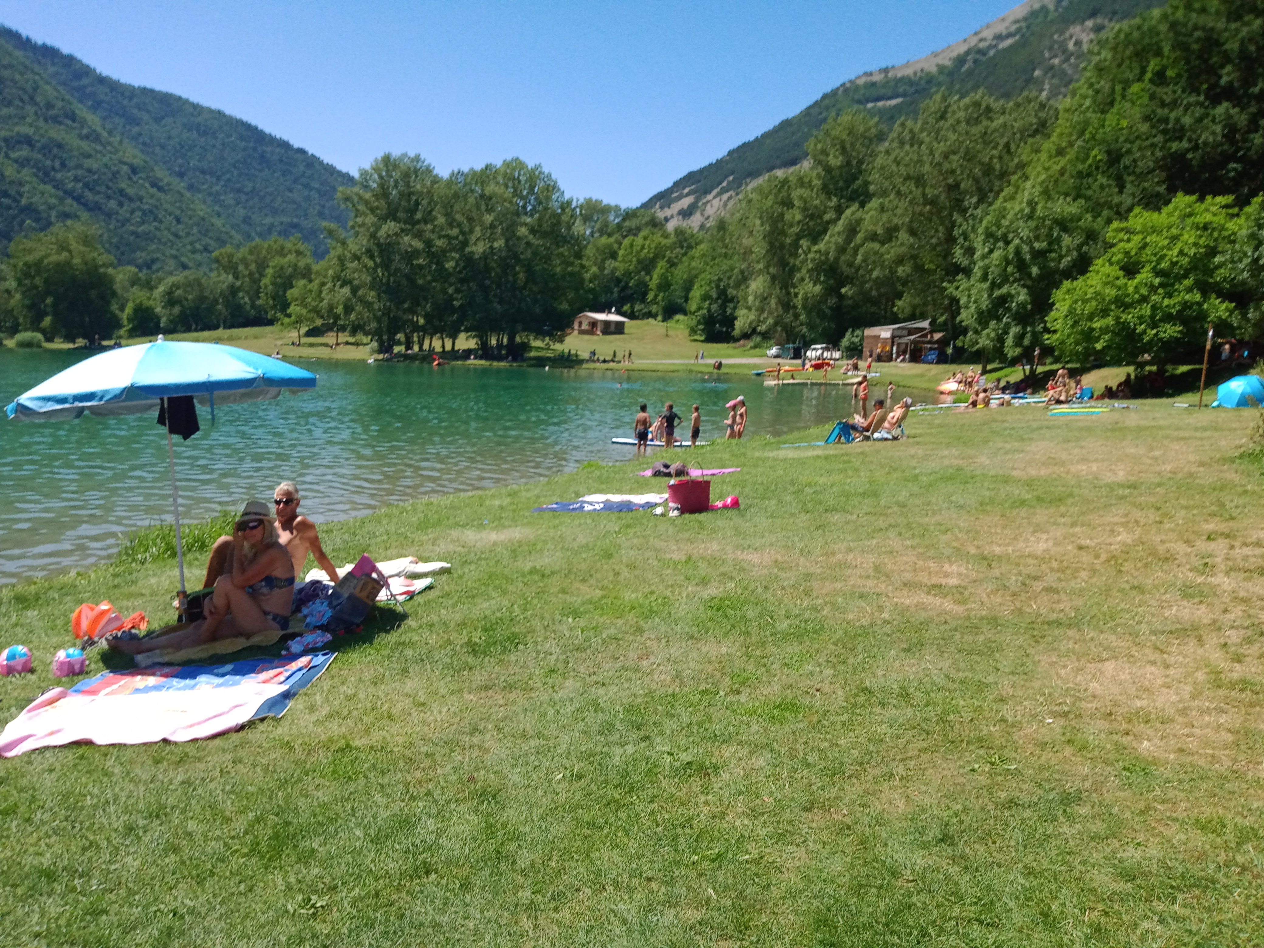 Lac familial. Une plage de sable pour les enfants. Beaucoup d'espaces mais peu d'ombre... Je recommande.