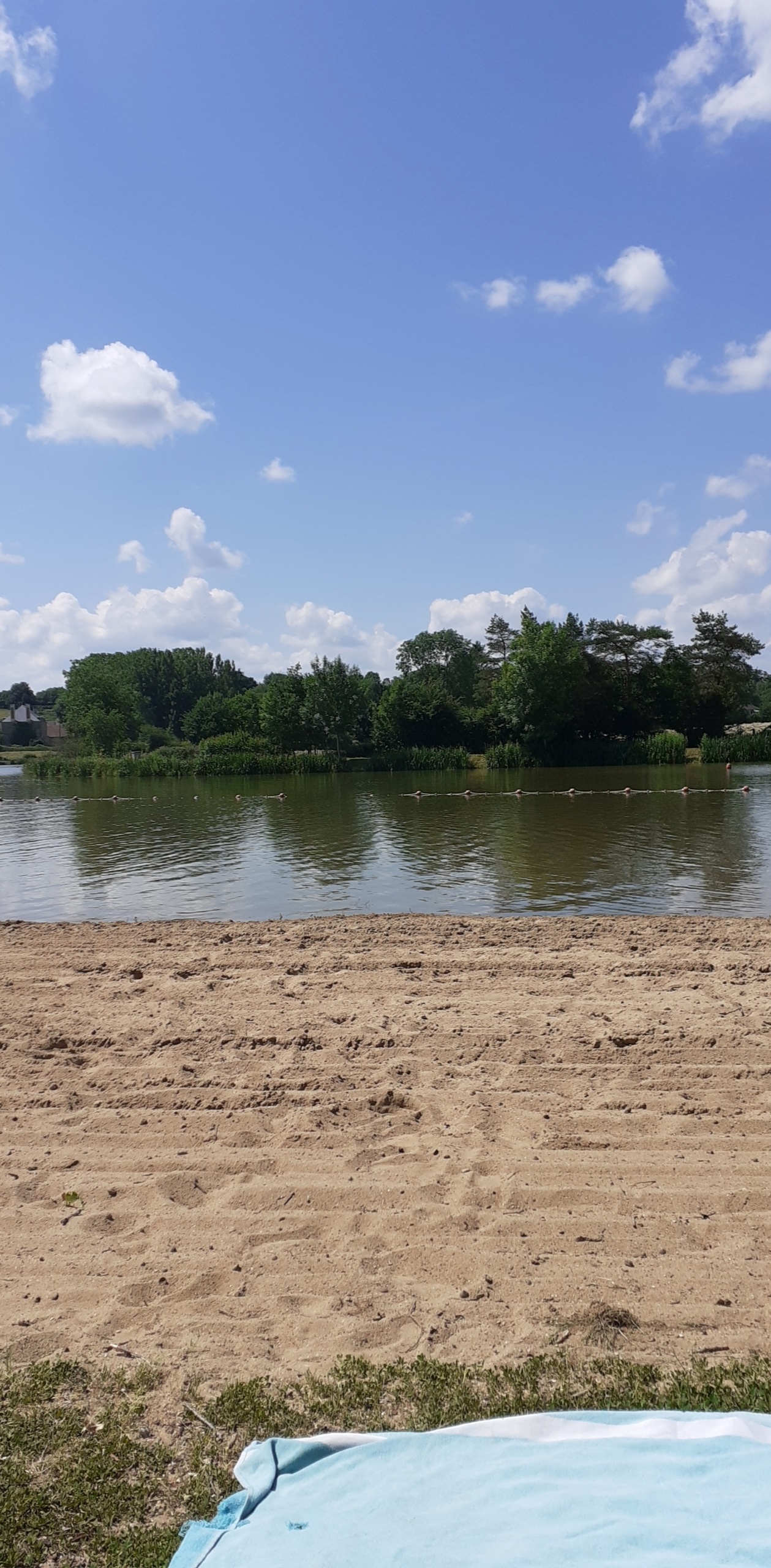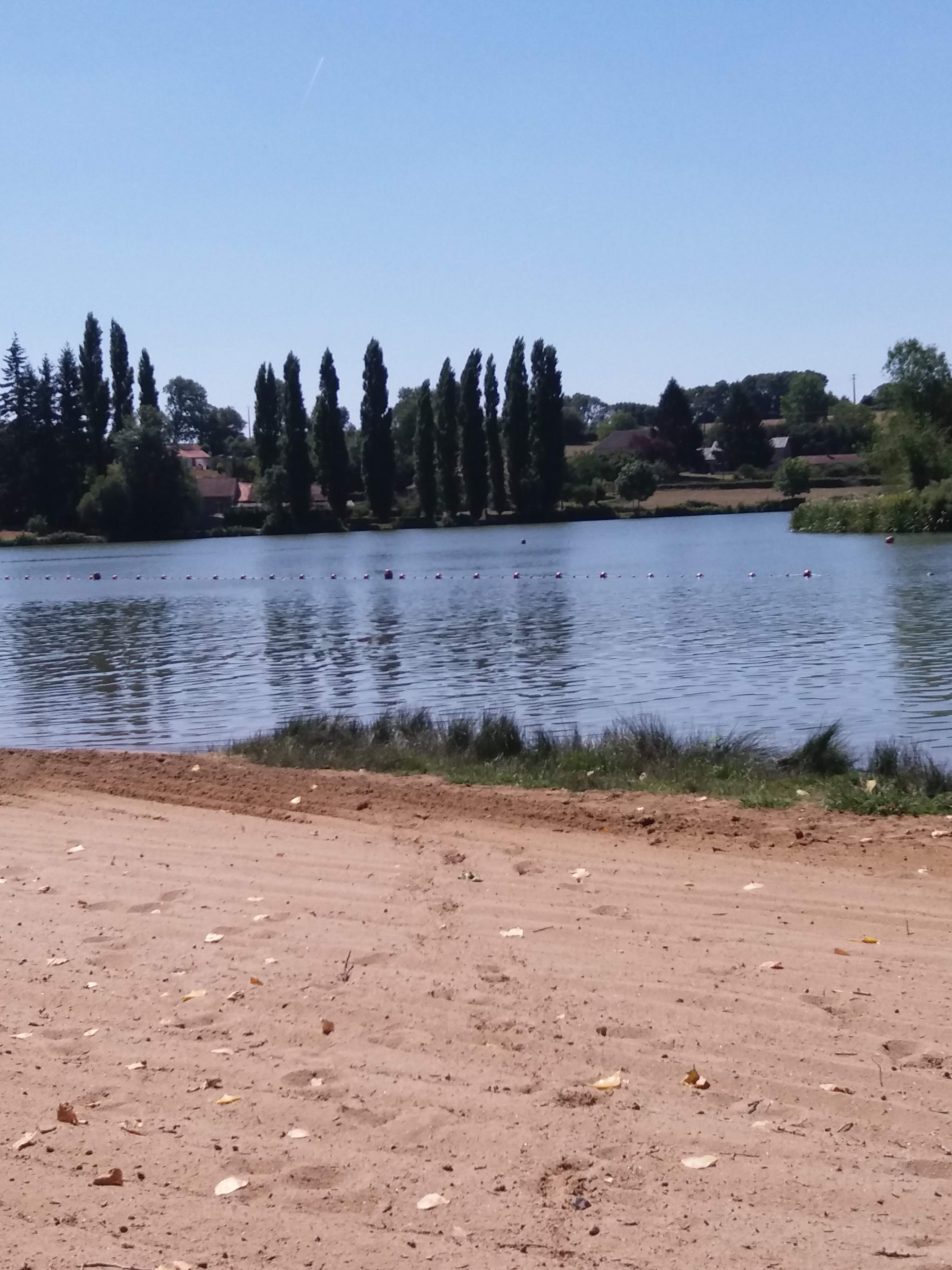 Petit plan d'eau avec plage pour se baigner sans aller jusqu'à la mer. Parfait pour pique-niquer en famille