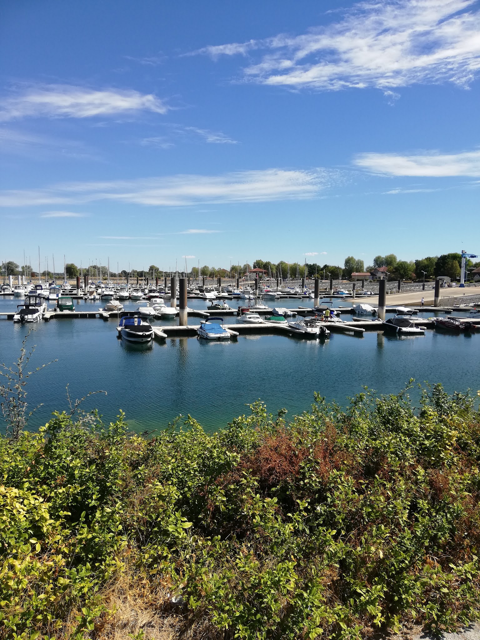 port sympa et joli avec petit train sur la digue et bateau promenade sur le lac