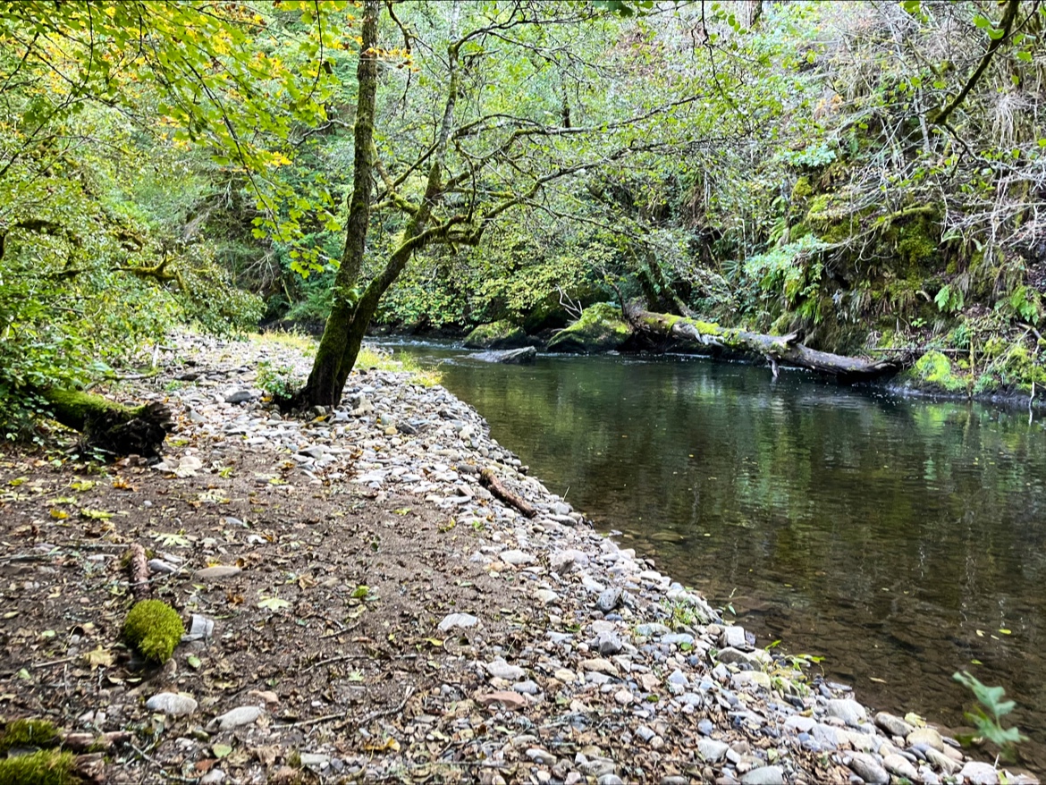 Très belle plage de galets en bord de rivière. Un véritable coin de fraîcheur. Magique