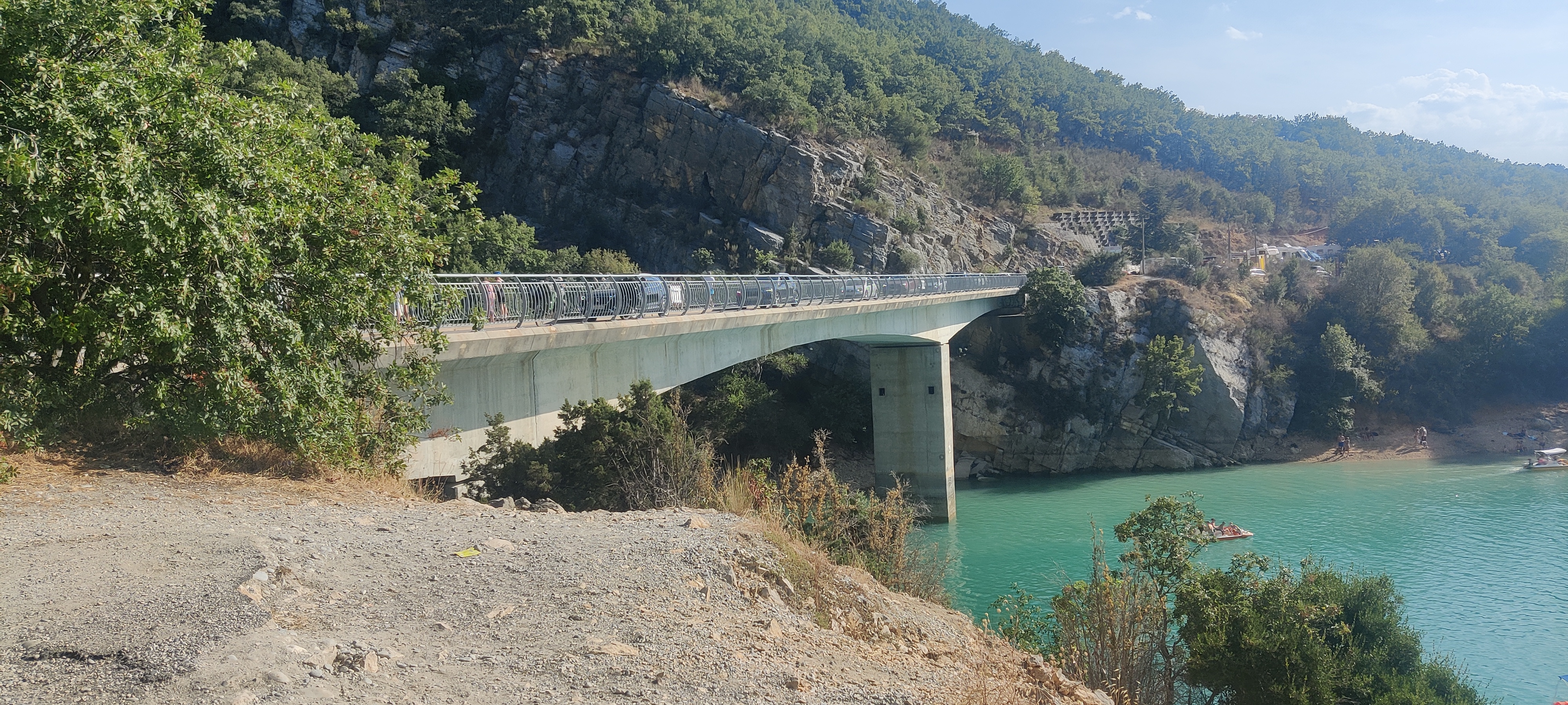 Paysage magnifique et baignade possible (prévoir des chaussures adaptées à la baignade, car plages de cailloux). Dommage qu'il y ait tant de personnes à laisser traîner leurs détritus... Petite boutique de snacks à proximité qui propose également des WC et douche (payant). Nous avons loué des Pédalos pour découvrir le lac et les gorges. Superbe !