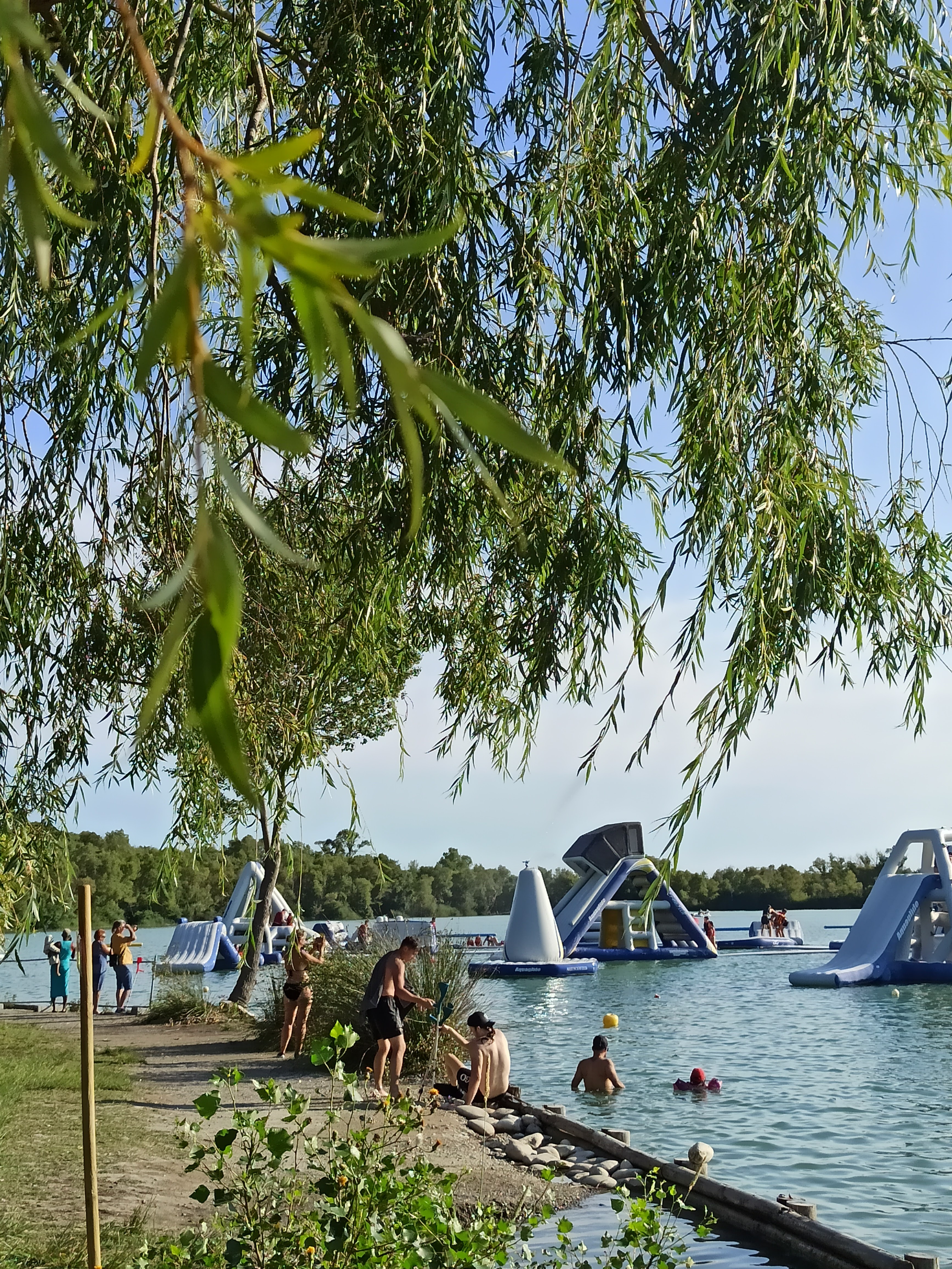 Très beau lac très agréable muni d'un jeu gonflable (payant) mais génial et à faire pour les enfants et les parents ! Également la possibilité de faire du paddle ou même du yoga sur paddle. Muni d'un snack et de plusieurs terrain de pétanque et même d'une table de ping pong.