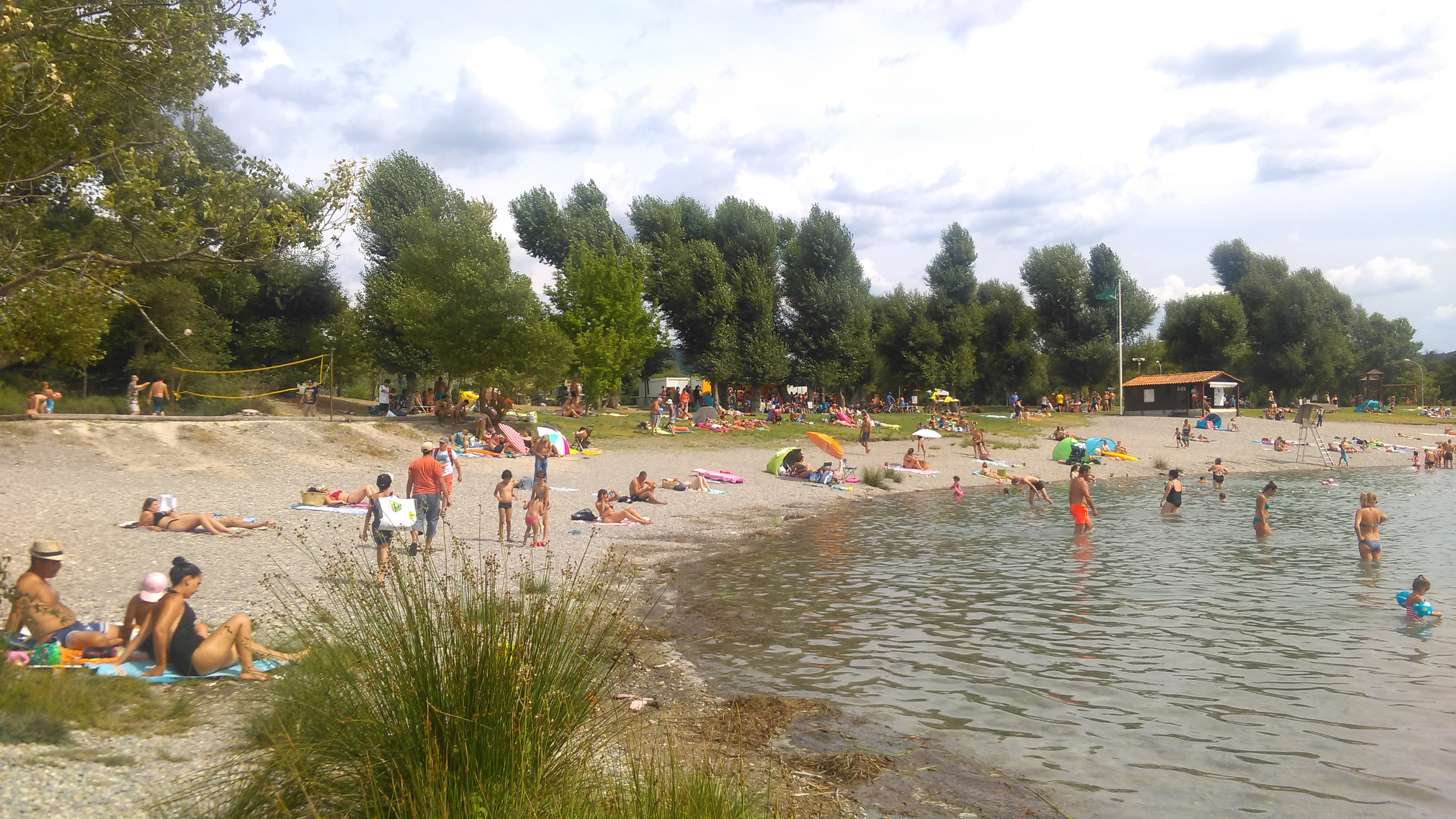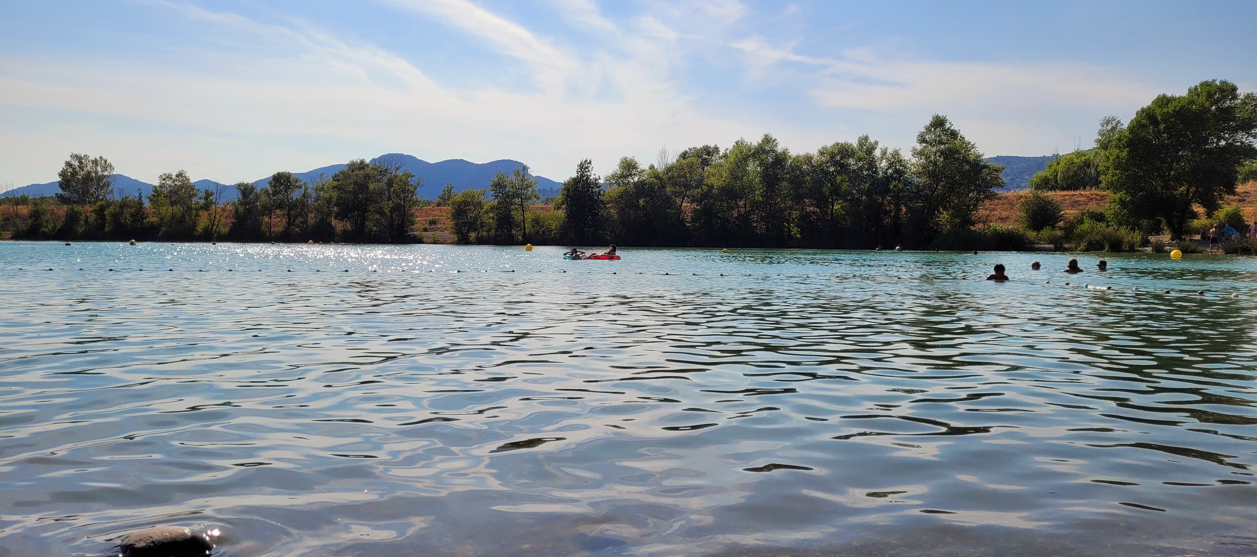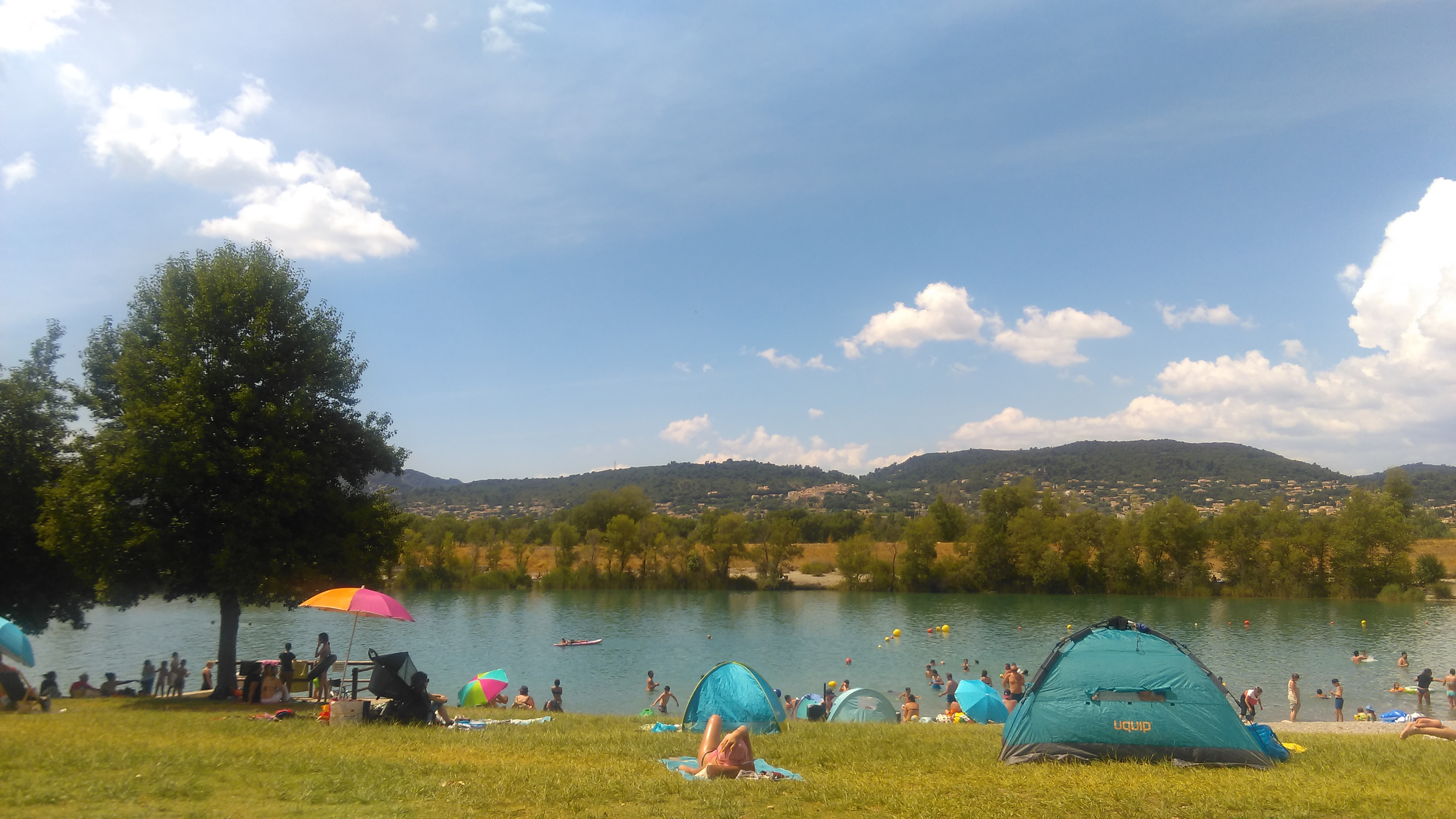 Ce lac vaut le détour ! Parking gratuit. Grands espaces. Beaucoup d'arbres avec le chant des cigales pour se mettre à l ombre. Côté sauvage avec insectes, canards, libellules.... Propre. Aire de jeux aquatiques payante (8€/heure) amusante. Idéal pour le paddle. Tranquille.