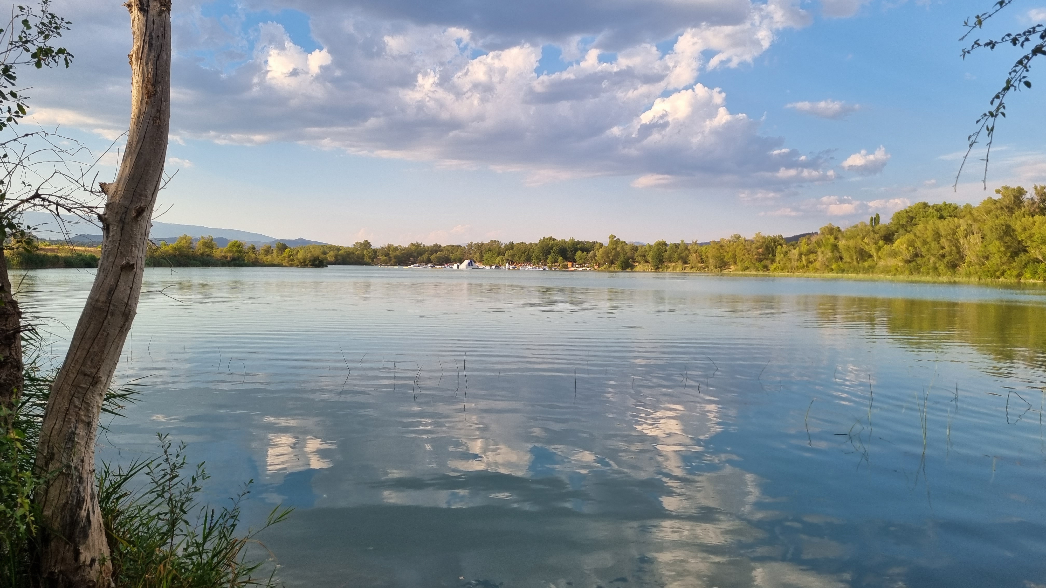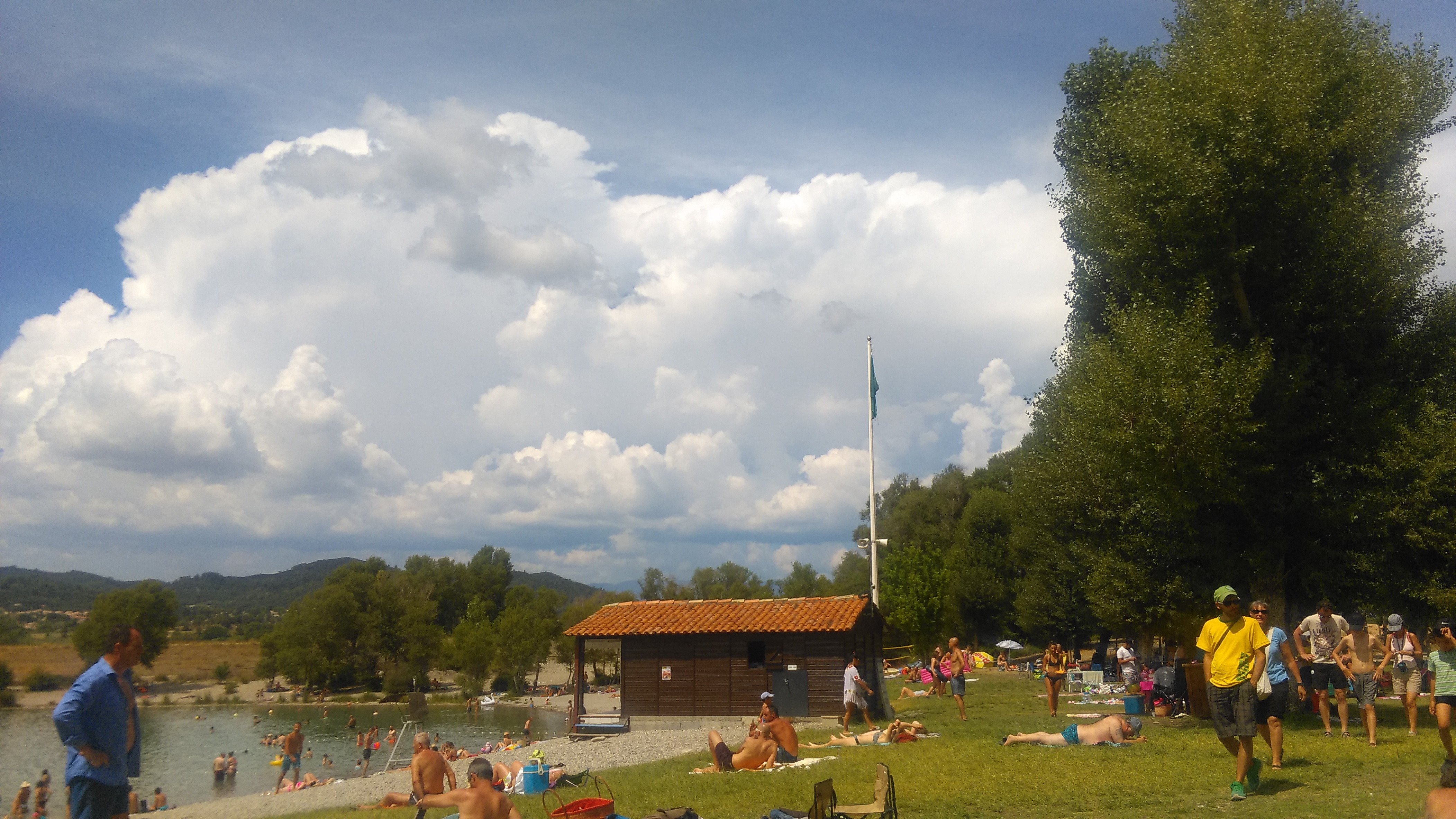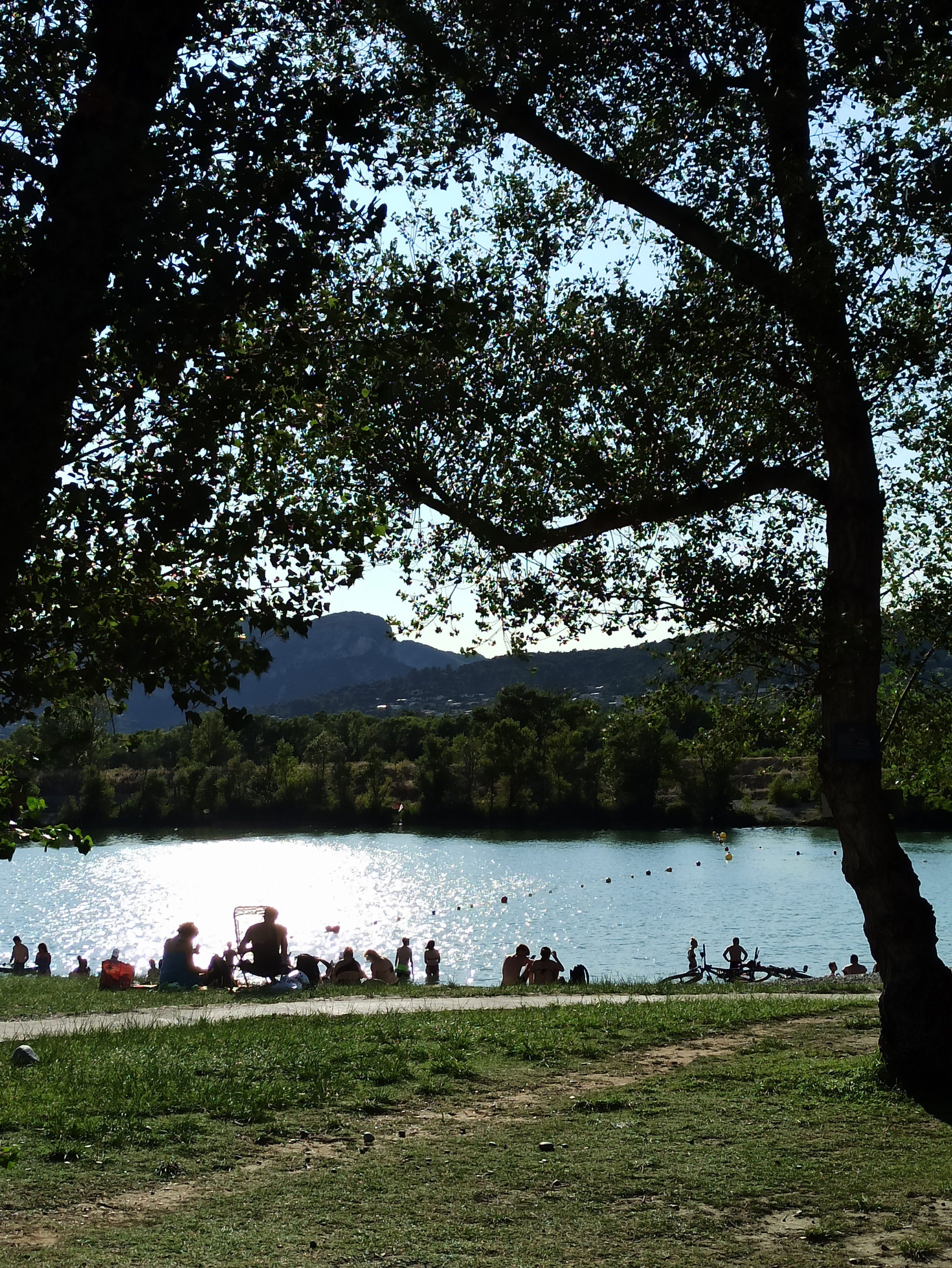 Ce lac vaut le détour ! Parking gratuit. Grands espaces. Beaucoup d'arbres avec le chant des cigales pour se mettre à l ombre. Côté sauvage avec insectes, canards, libellules.... Propre. Aire de jeux aquatiques payante (8€/heure) amusante. Idéal pour le paddle. Tranquille.
