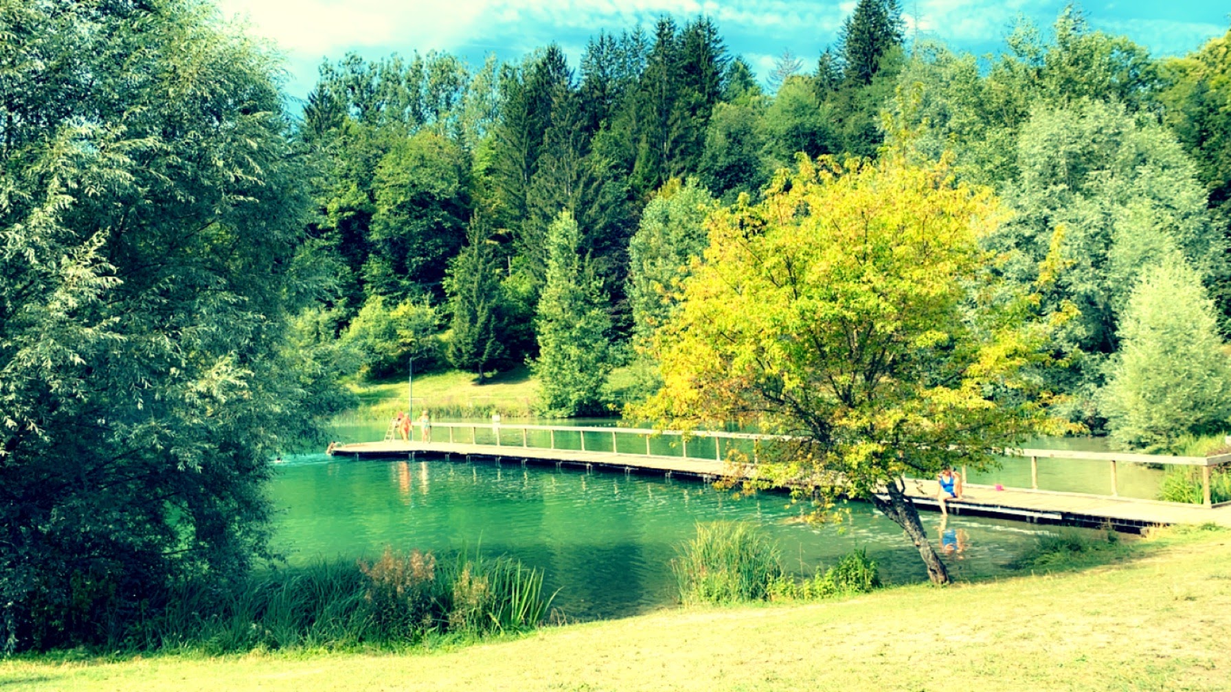 On adore cet endroit, l'eau est fraîche, claire. Un petit ponton pour faire des gros plouf ! Excellent plan d'eau !