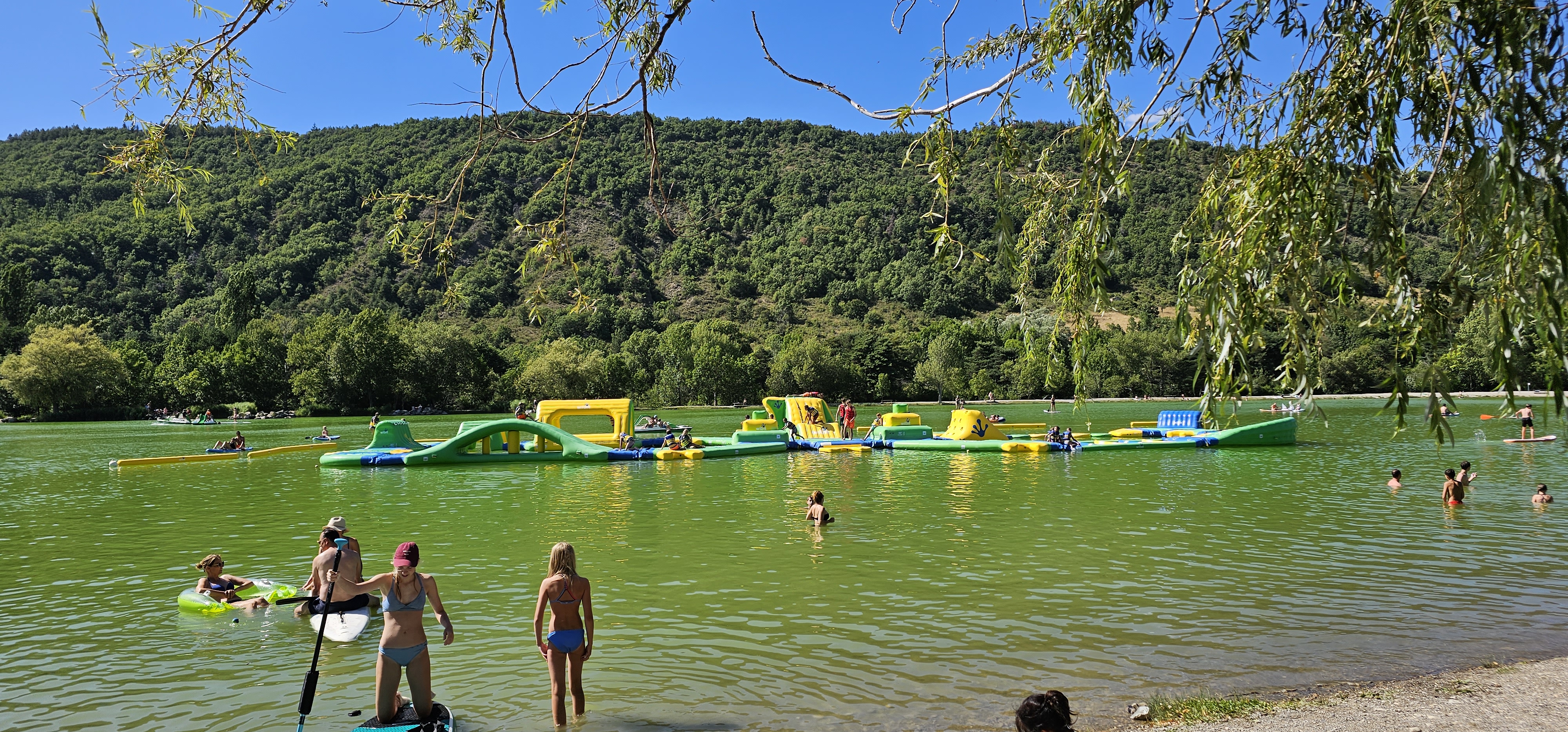 Posté le 16/08/2023 à 19:11"Plan d’eau agréable où l’on peut se baigner. Des activités d’eau sont proposées moyennant paiement comme paddle, pédalo, jeux gonflables sur l’eau."